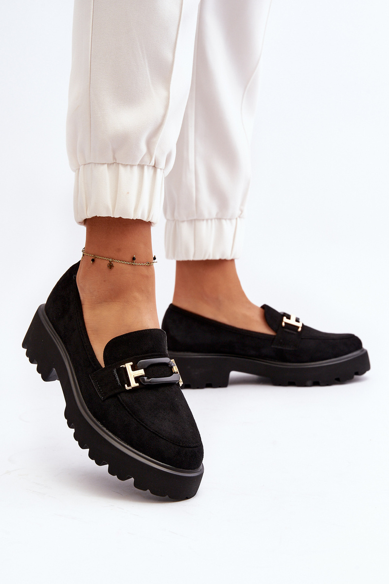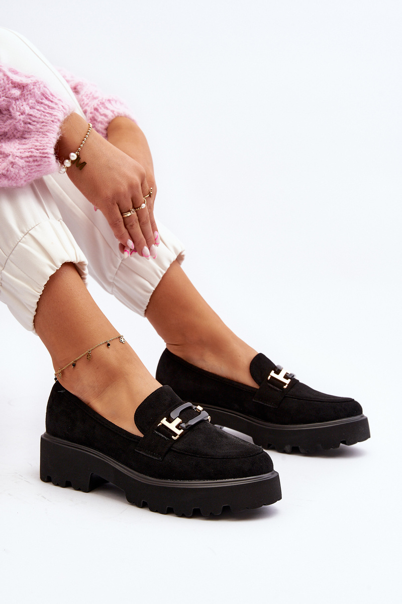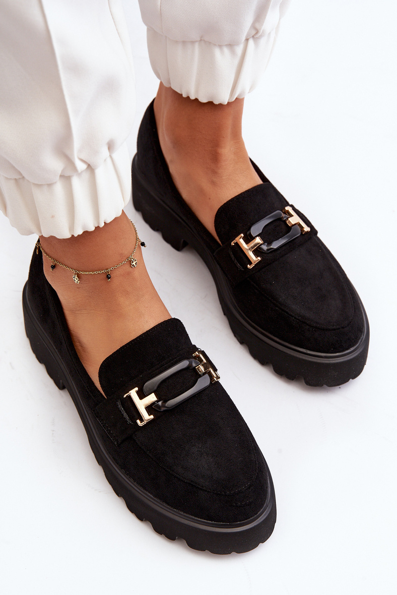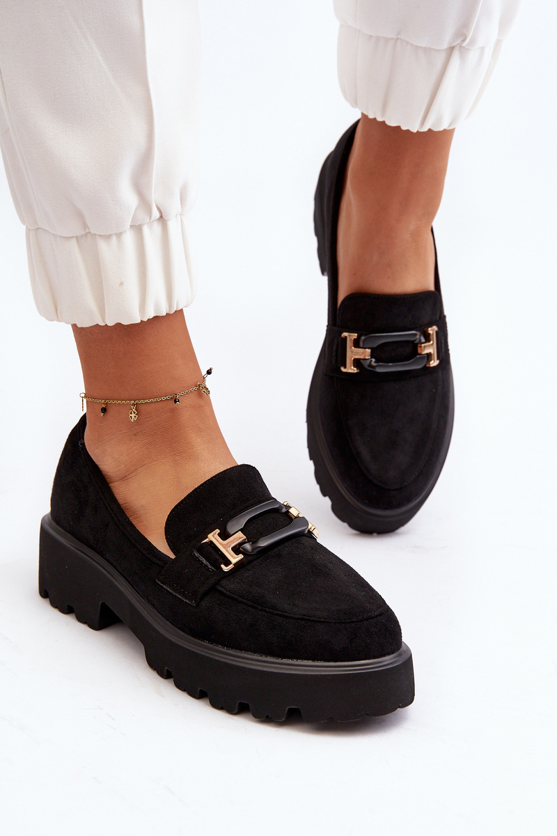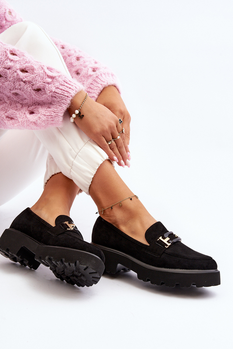 Mokasyny Damskie Z Ozdobą Czarne Omavia