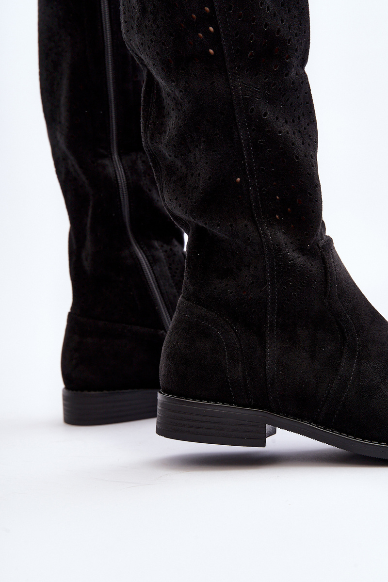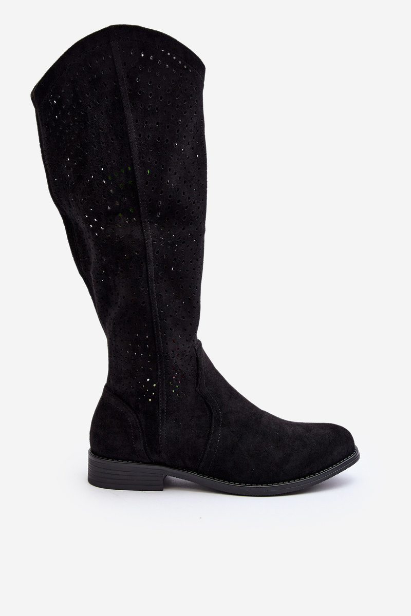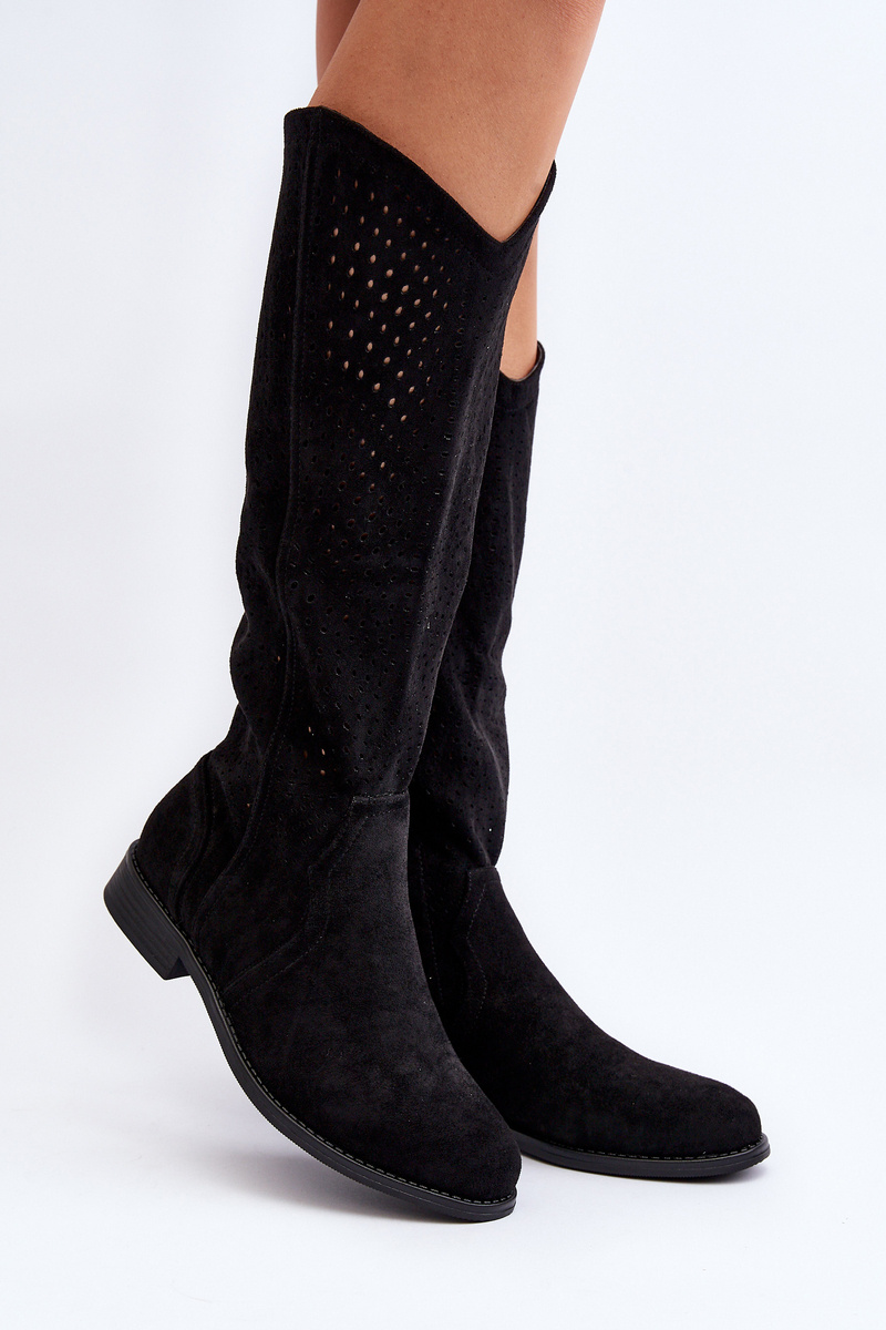 S.Barski HY66-150 Ażurowe Kozaki Na Płaskim Obcasie Czarne