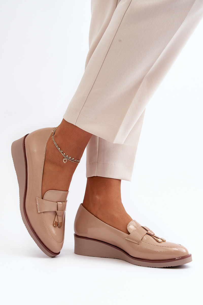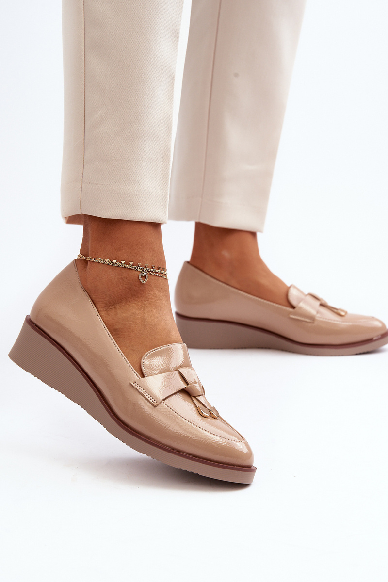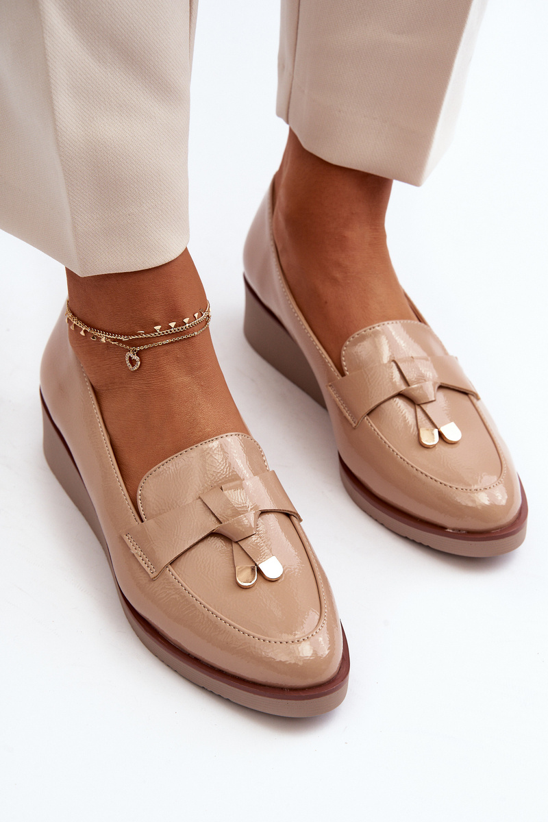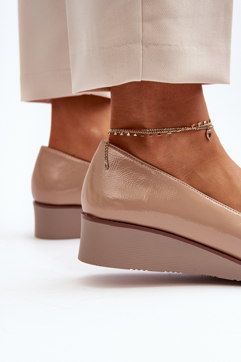 Damskie Lakierowane Półbuty Na Koturnie Z Ozdobą Beżowe Miliret