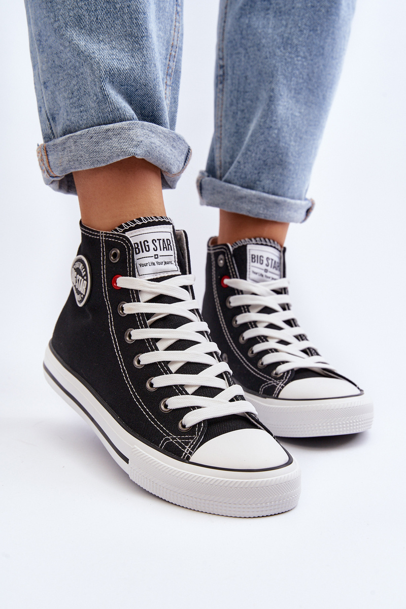 Damskie, wysokie trampki od polskiej marki BIG STAR. Z boku cholewki posiadają ozdobne, gumowe logo marki. Buty posiadają miękką, materiałową wkładkę. Osadzone na delikatnej platformie z antypoślizgową podeszwą. Model klasycznie sznurowany. Koniecznie sprawdź całą naszą kolekcję butów marki BIG STAR. Przy wyborze rozmiaru prosimy sugerować się tabelą rozmiarów.