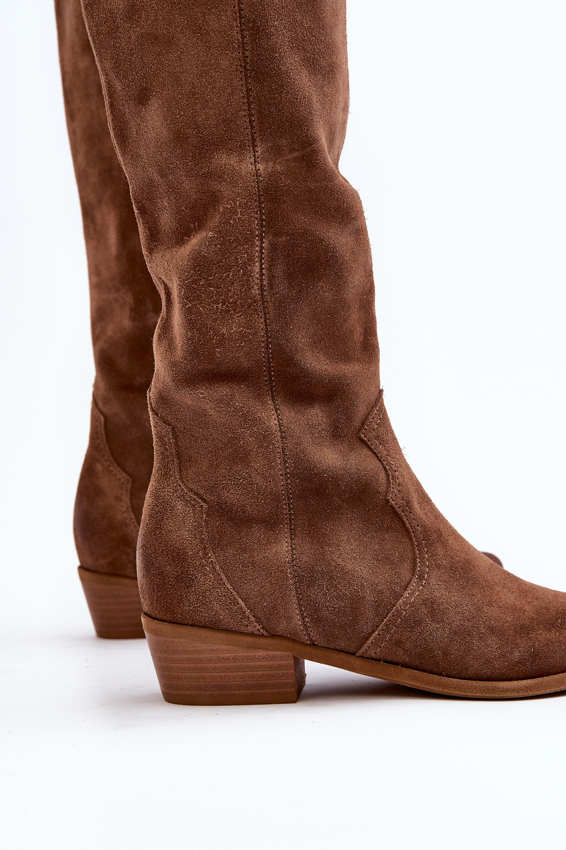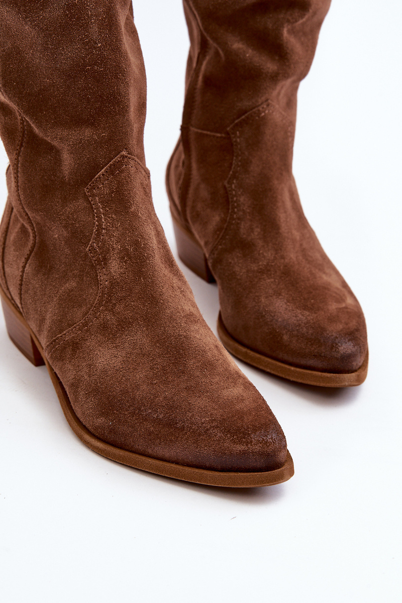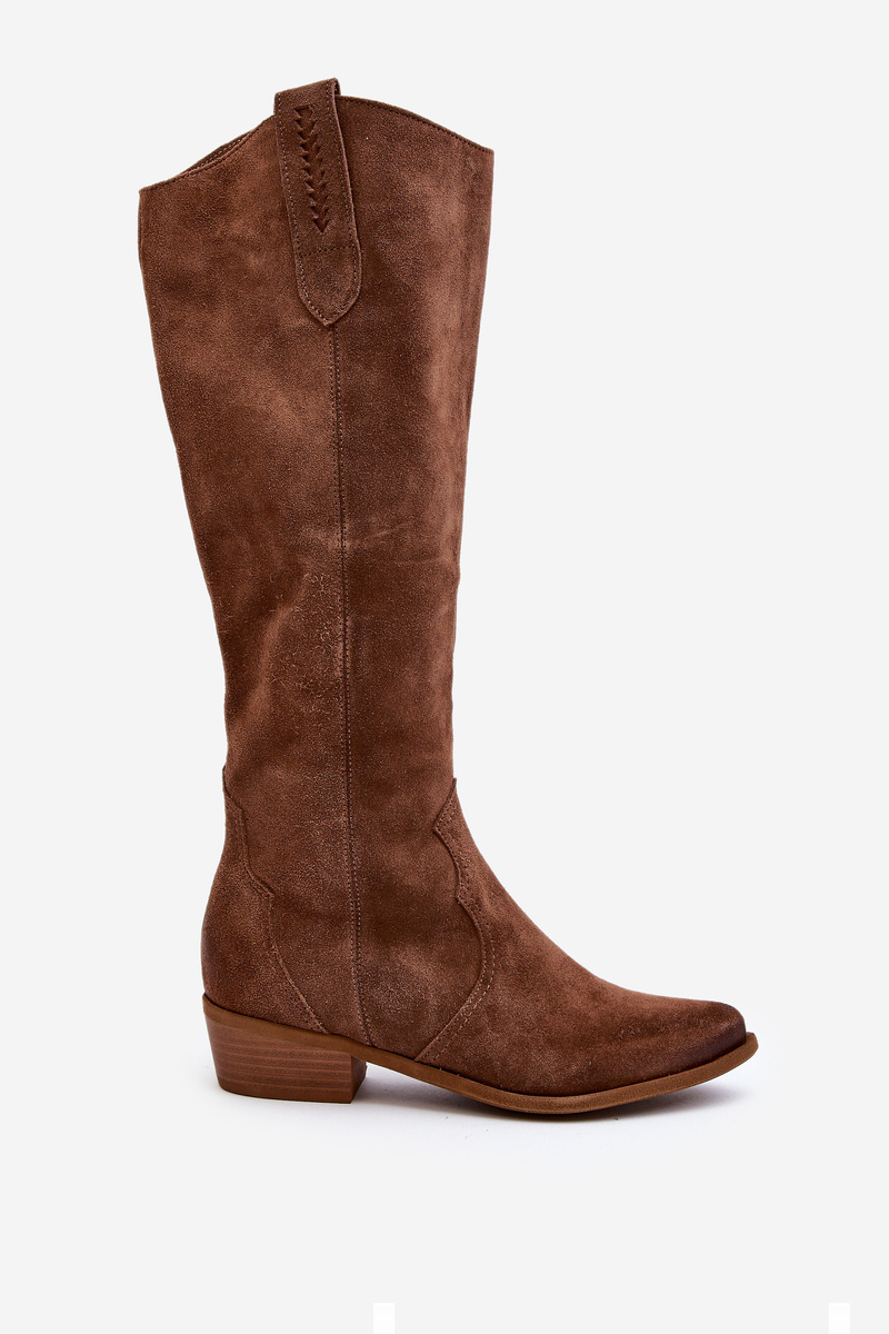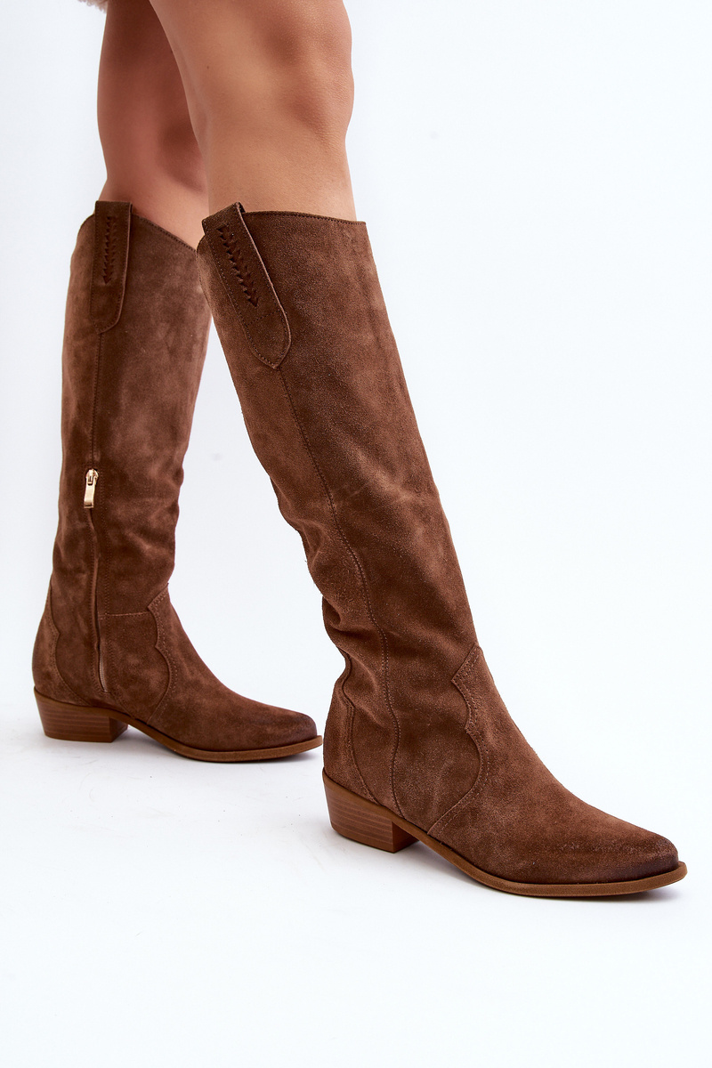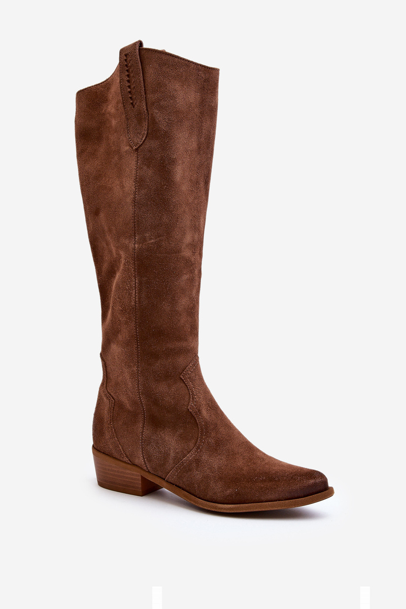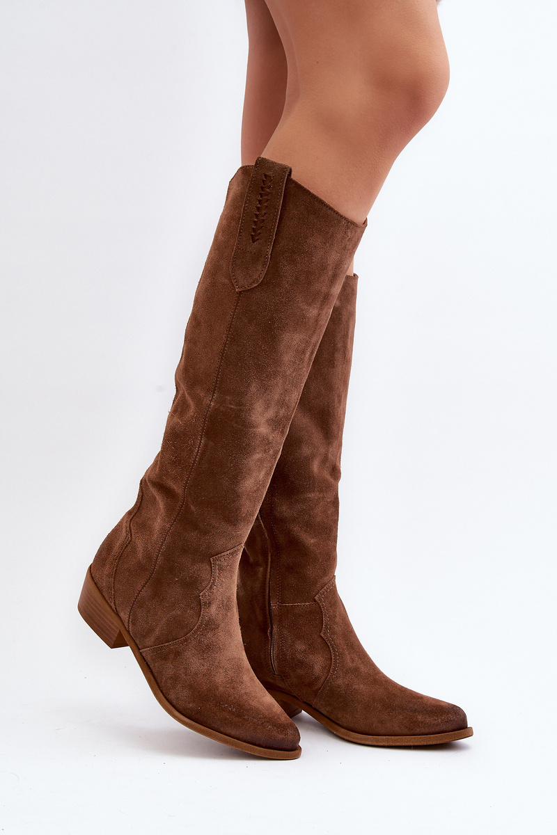 Zazoo 3427 Damskie Zamszowe Kozaki Kowbojki Brązowe
