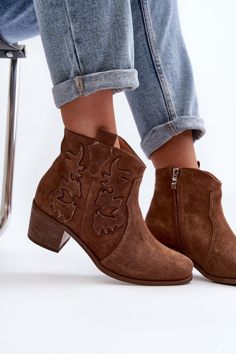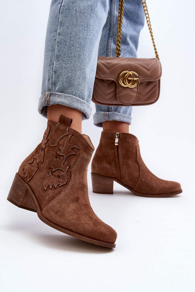 Zazoo 3426 Damskie Zamszowe Botki Kowbojki Brązowe