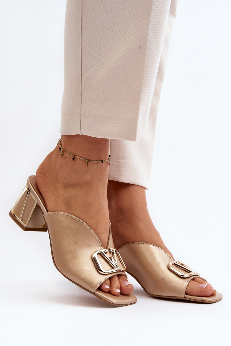 Eleganckie Klapki Damskie Na Obcasie Laura Messi 2771 Złote