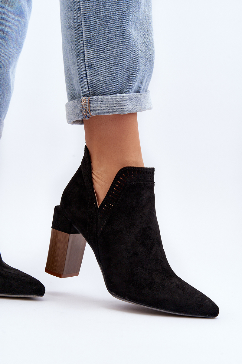 Botki Na Słupku Z Ażurowym Wzorem Czarne Vailen