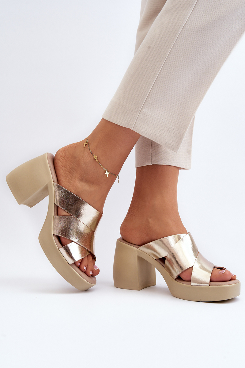Zazoo 40373 Skórzane Klapki Na Klocku Złote