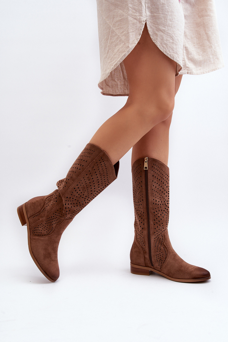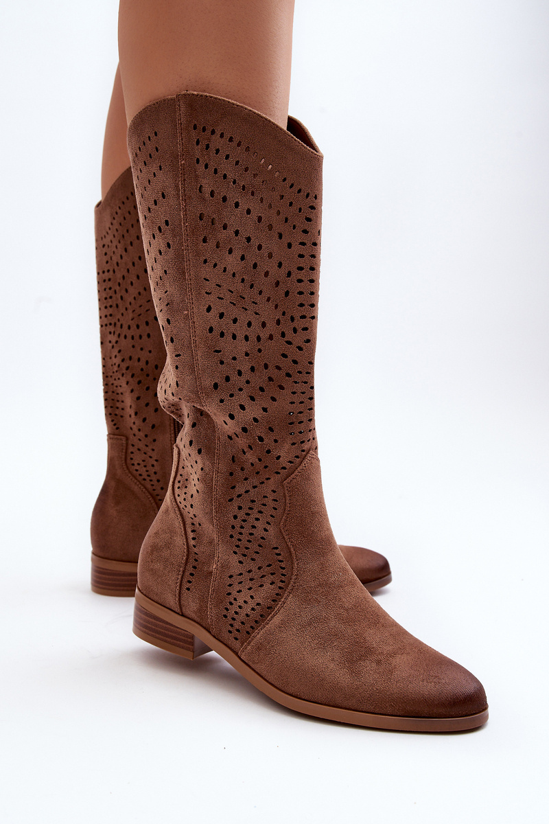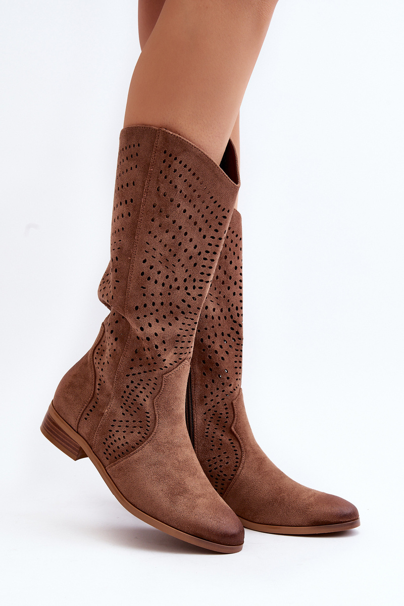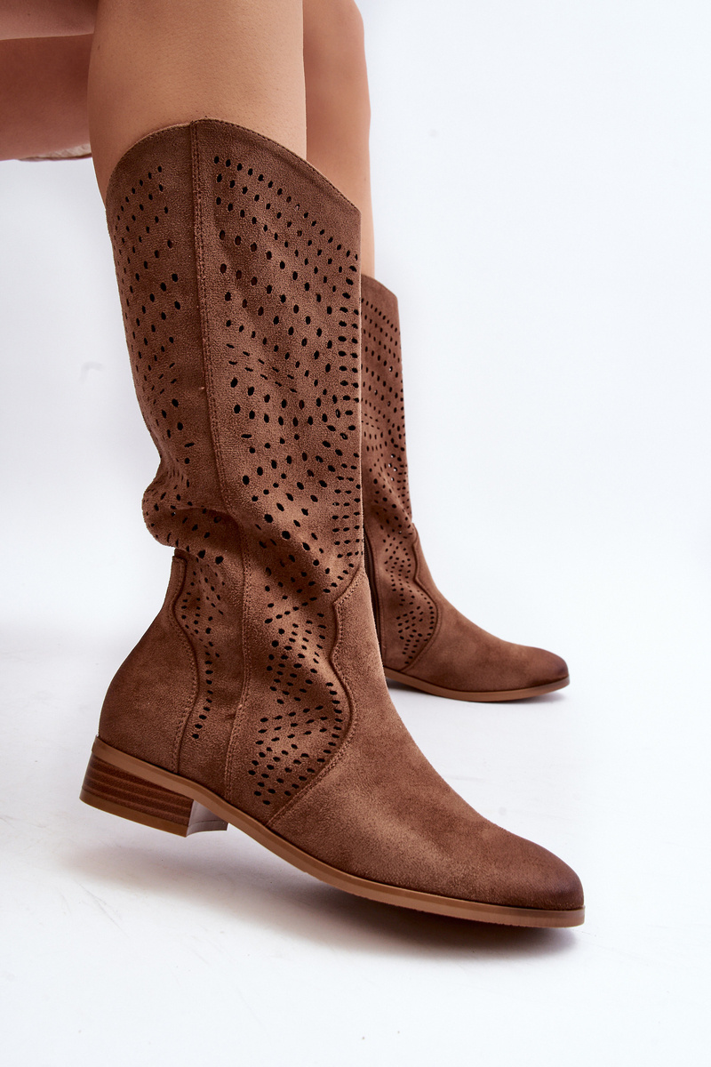 Ażurowe Kozaki Do Połowy Łydki Brązowe Kleorelia