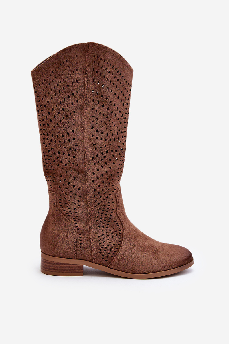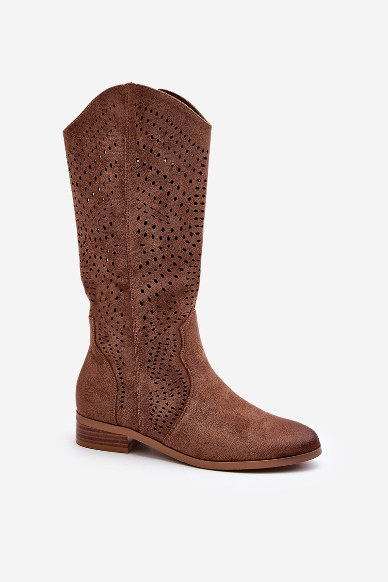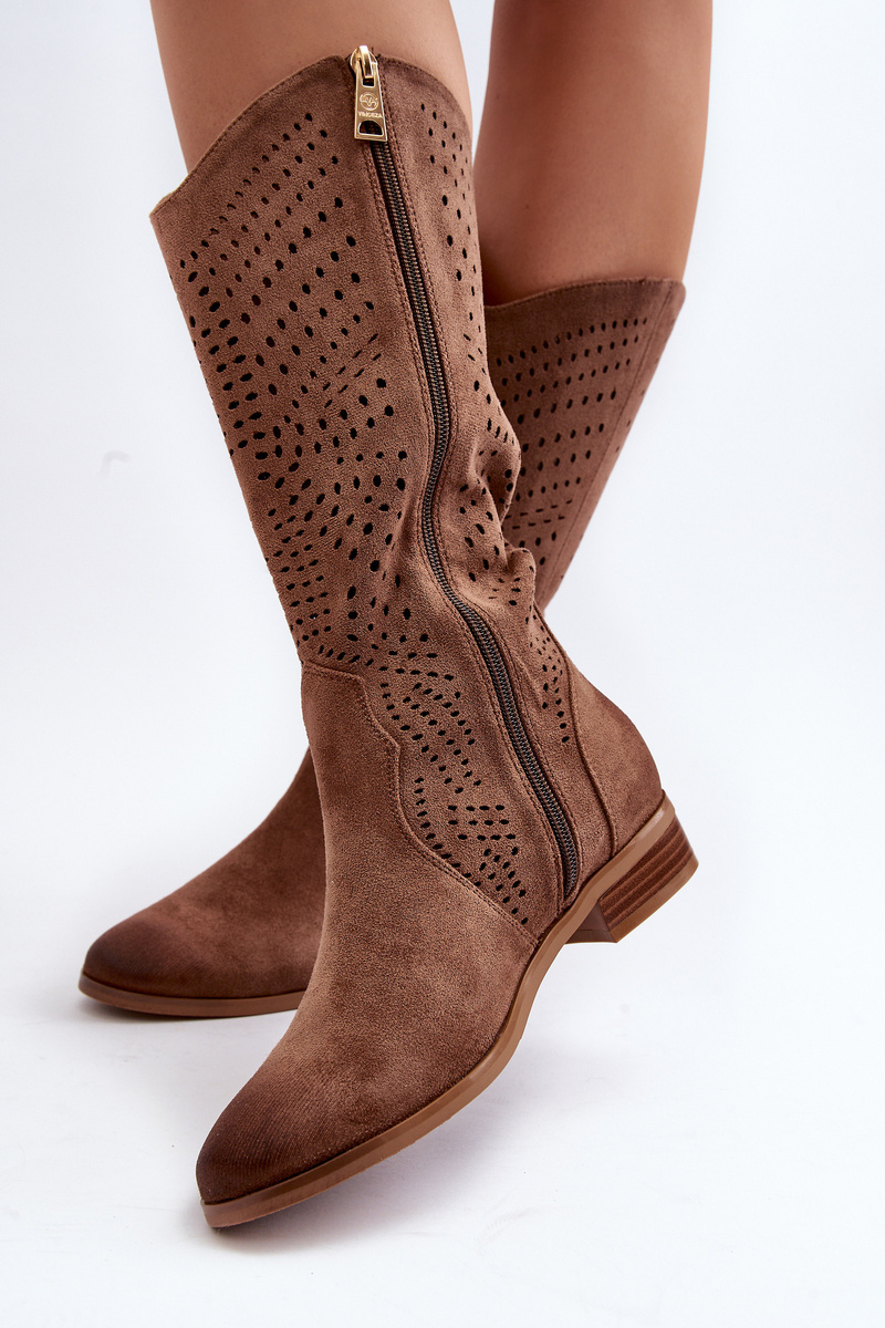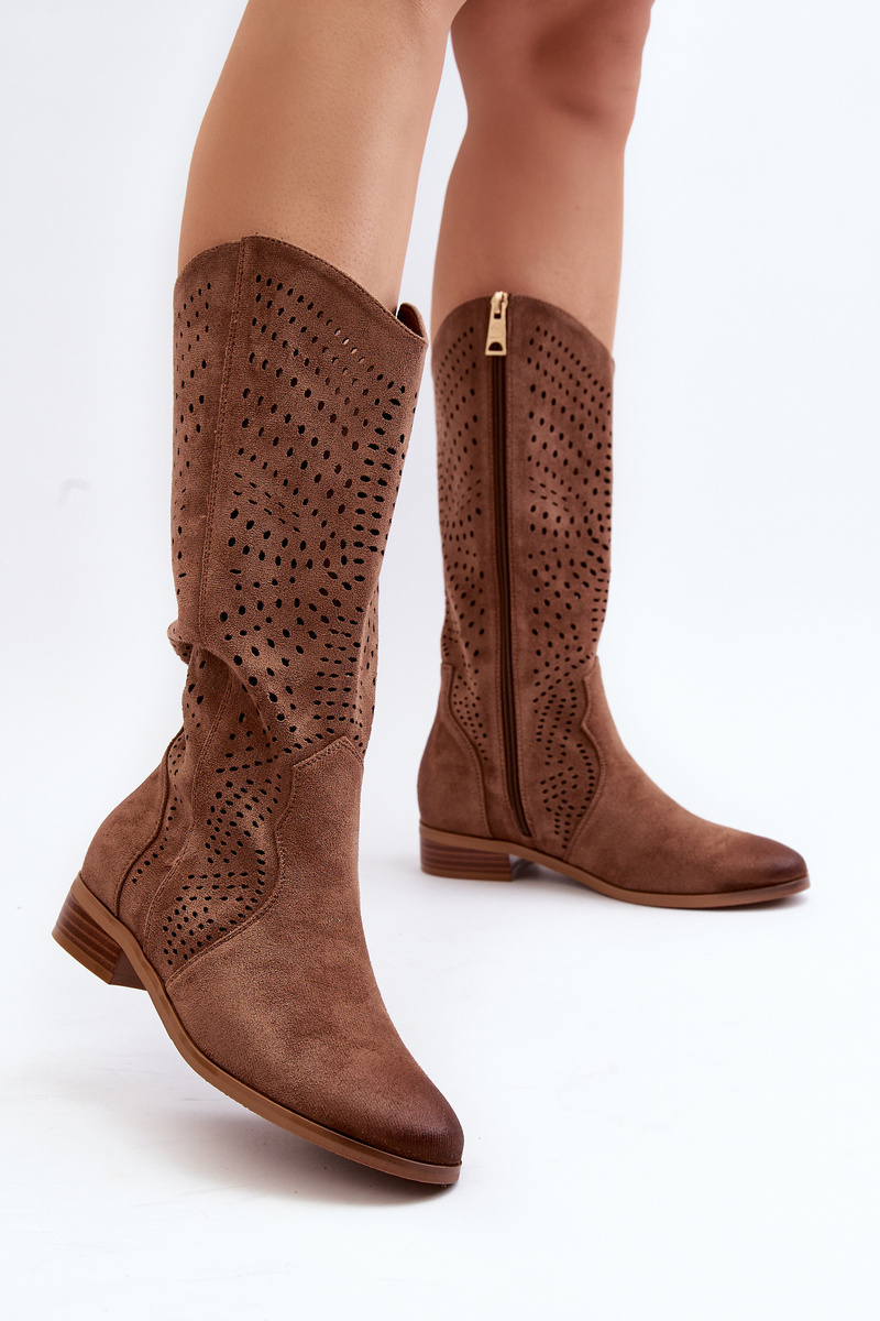 Ażurowe Kozaki Do Połowy Łydki Brązowe Kleorelia