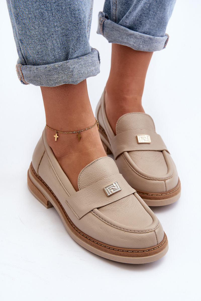 Zazoo 20165 Skórzane Mokasyny Damskie Beżowe
