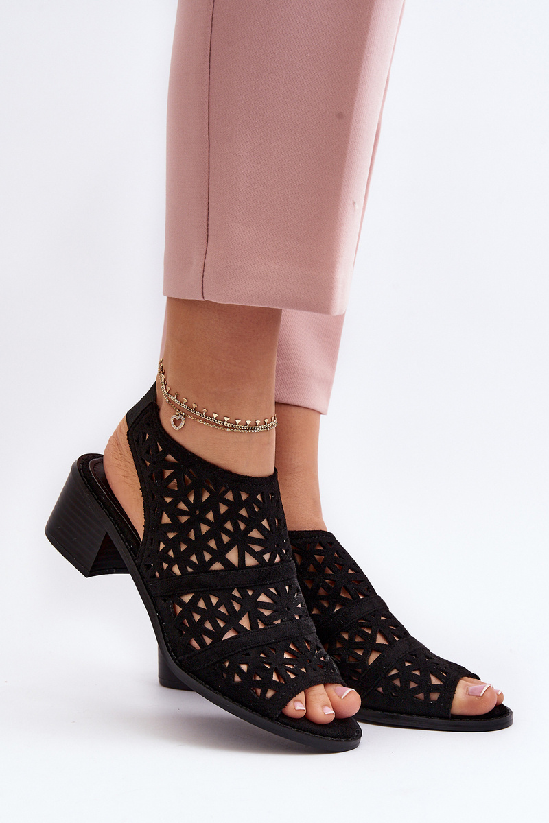Ażurowe Sandały Na Obcasie Czarne Serapina