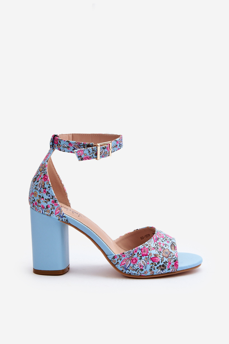 Sandały Na Słupku W Kwiaty Niebieskie Vitamella