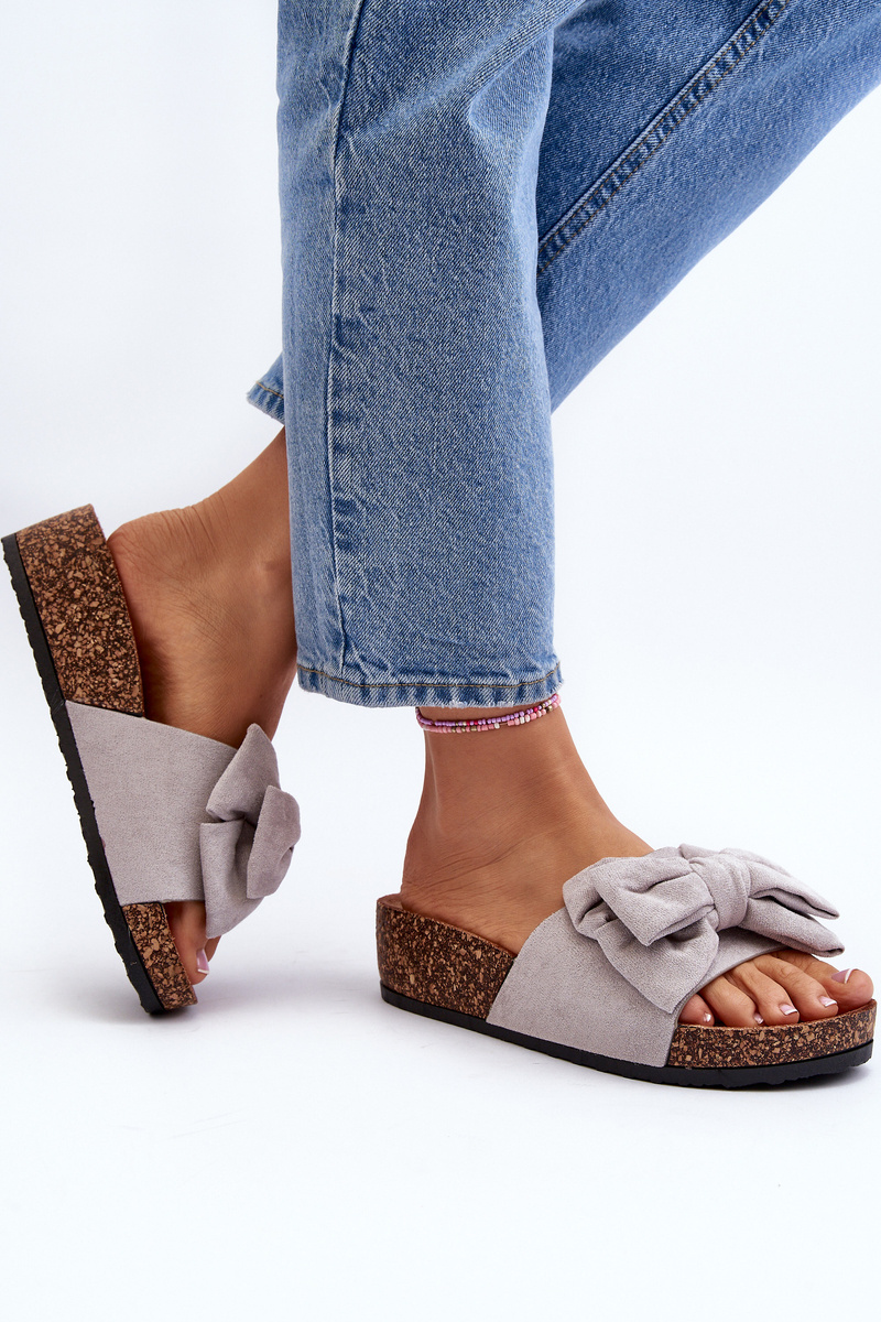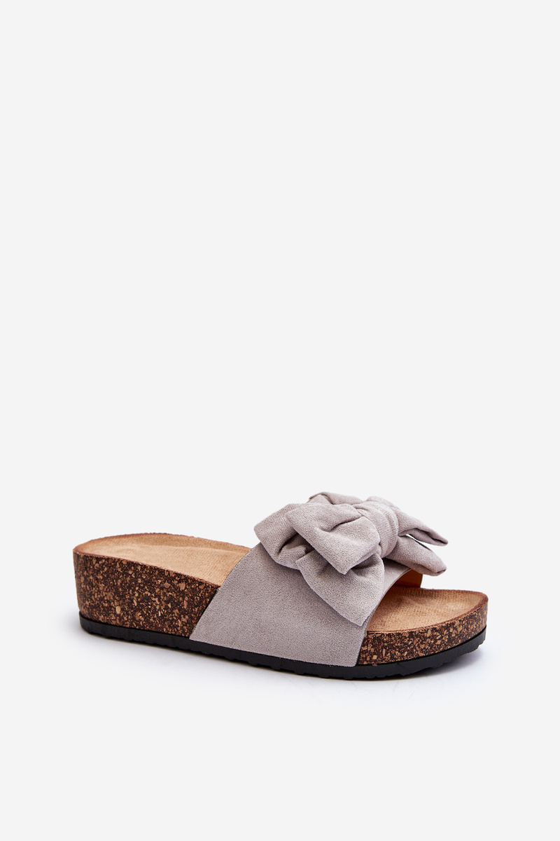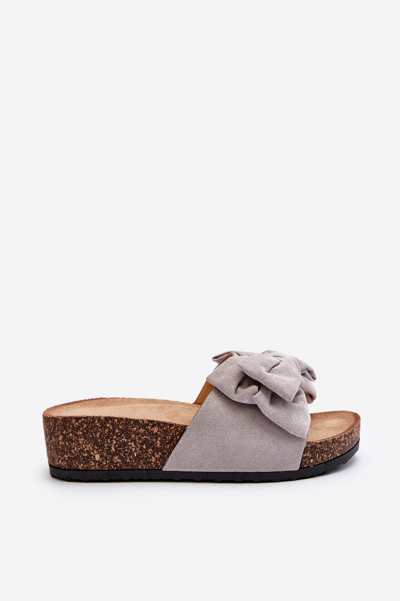 Damskie Klapki Na Korkowej Platformie Z Kokardą Szare Tarena