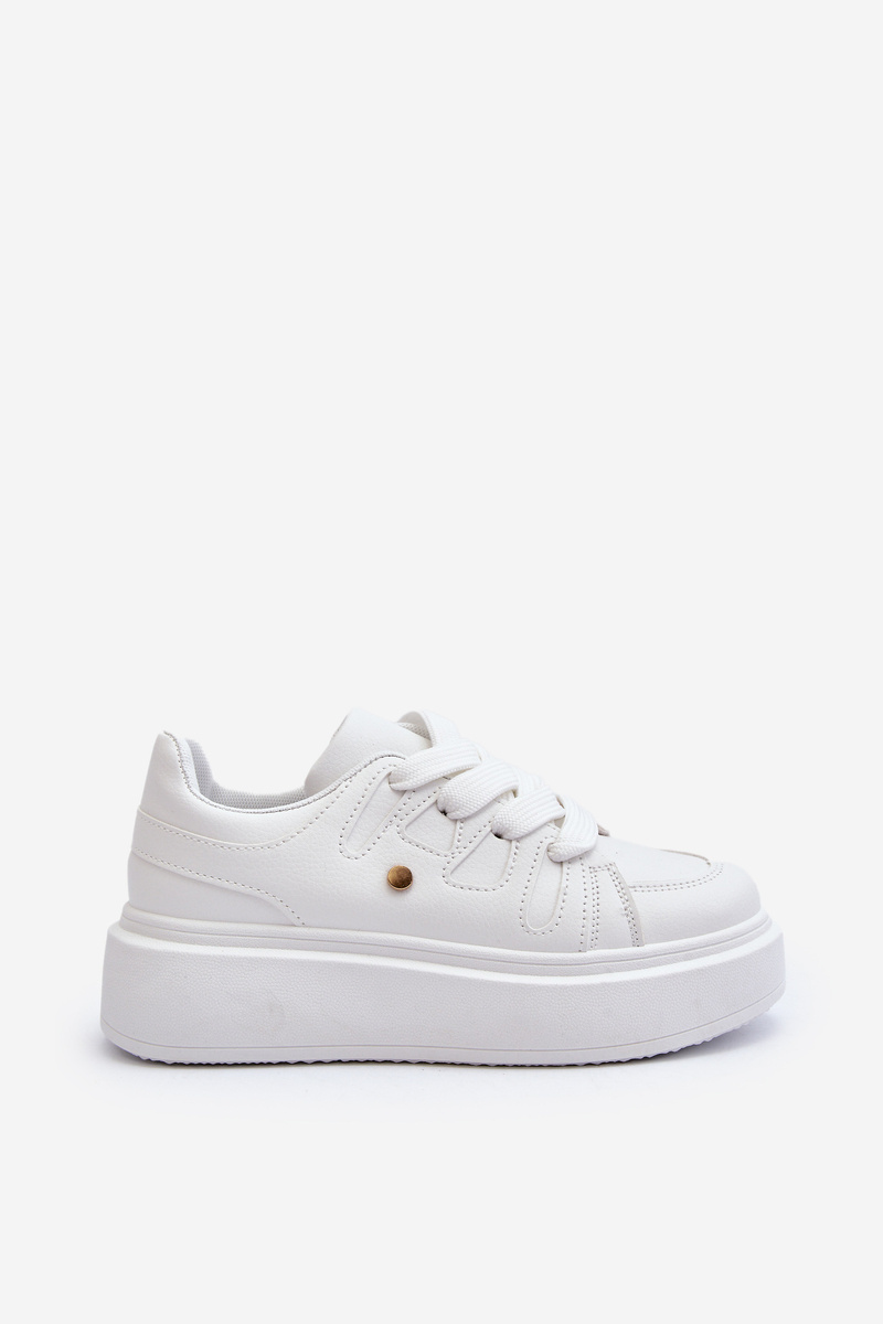 Sneakersy damskie wykonane z eko skóry. Osadzone na platformie. Noski zaokrąglone. Miękka wkładka zapewni wygodę podczas użytkowania. Fason ten idealnie dopełni stylizacje ze spodniami. Idealnie sprawdzą się podczas codziennych aktywności! Przy wyborze rozmiaru prosimy kierować się tabelą rozmiarów.
