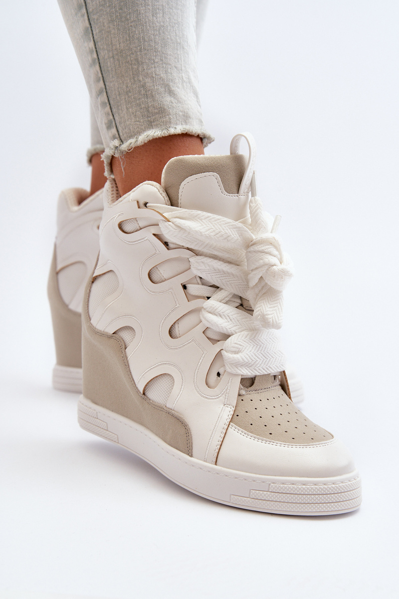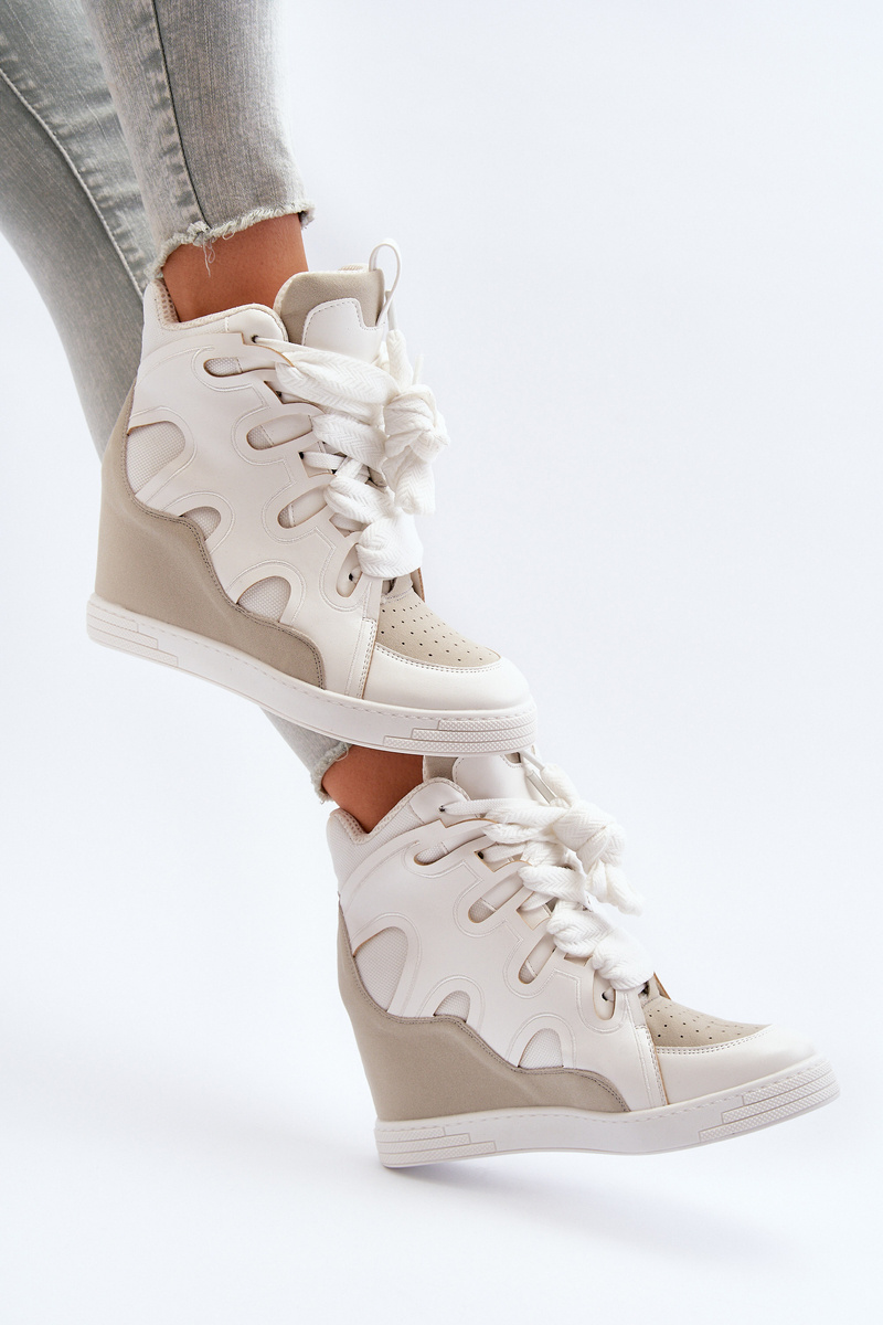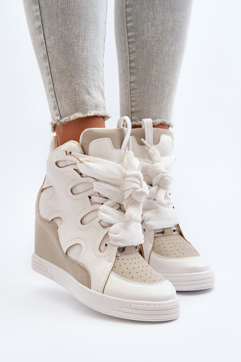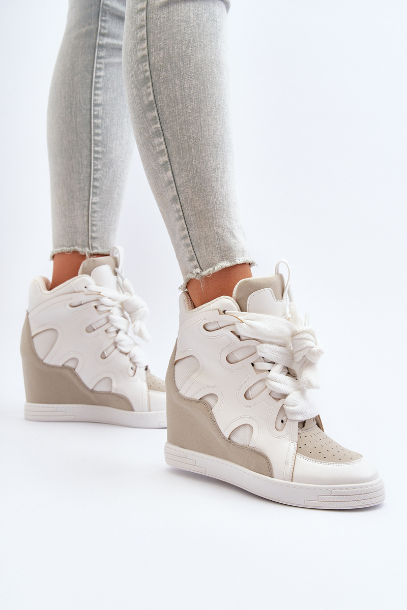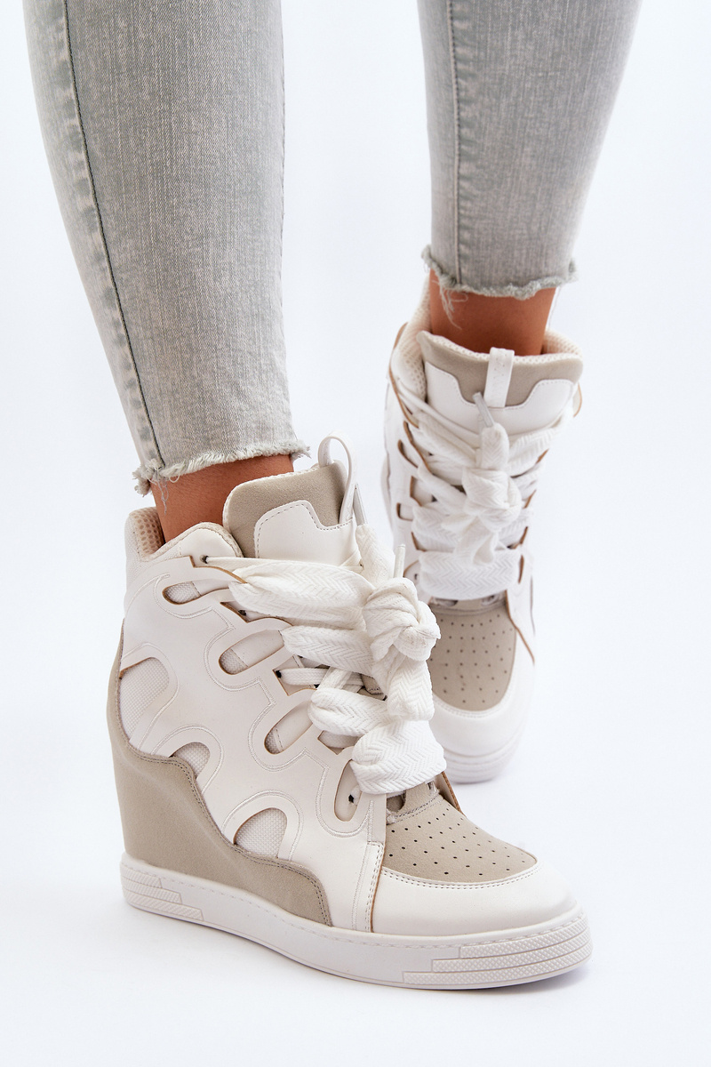 Damskie Sneakersy Na Koturnie Białe Leoppa