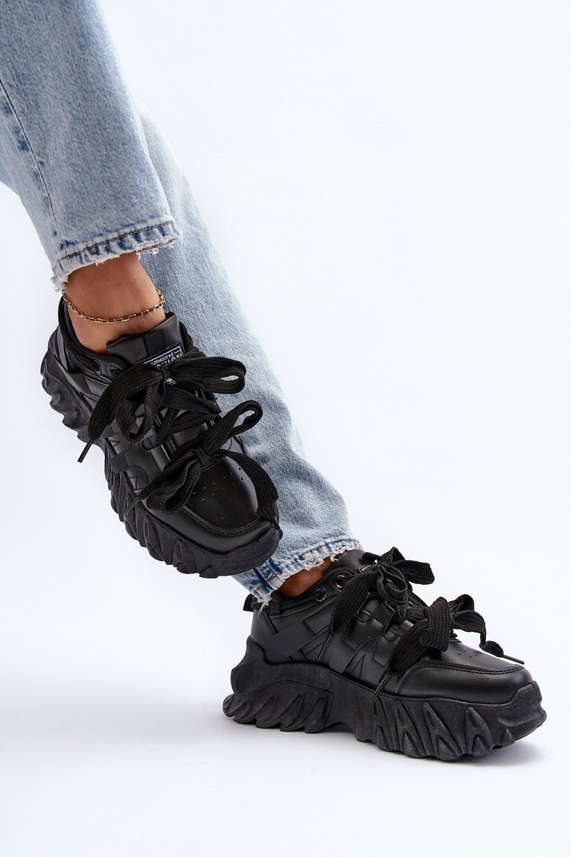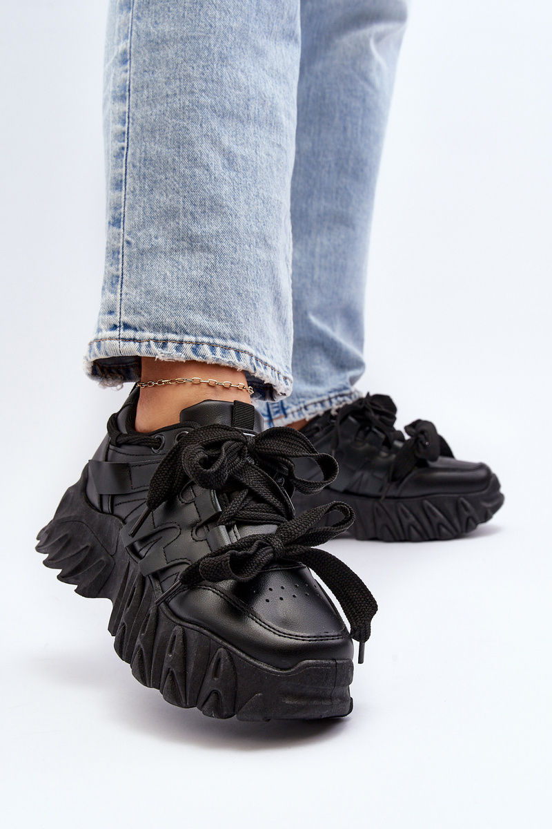 Sneakersy Damskie Na Masywnej Podeszwie Czarne Ellerai
