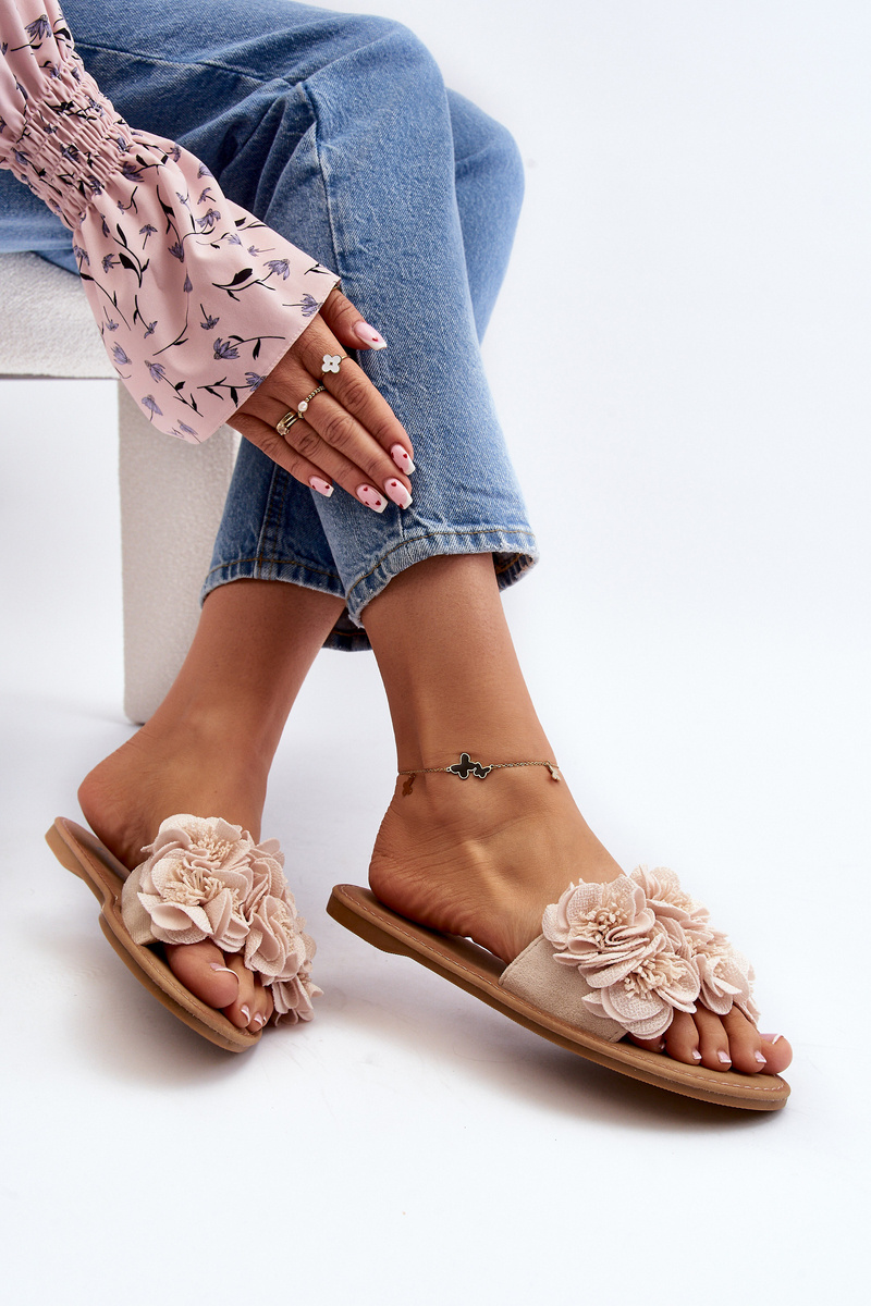 Damskie Klapki Z Kwiatkami Beżowe Eelfan
