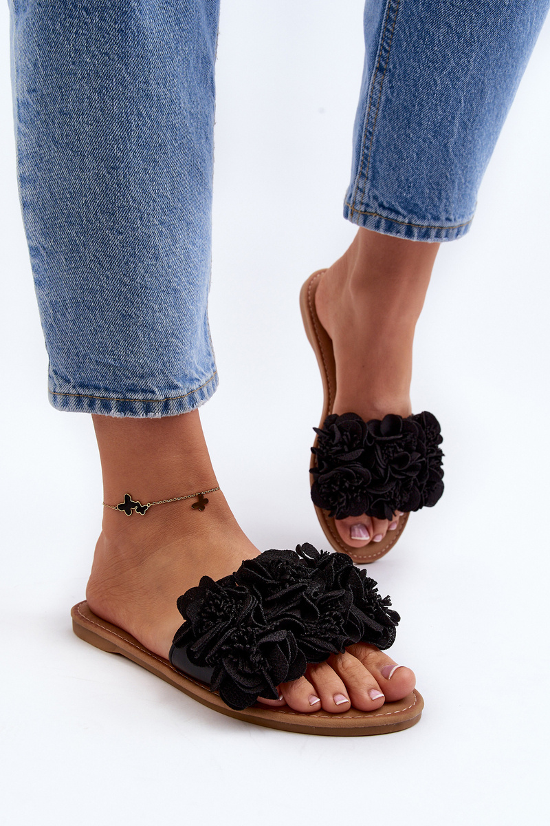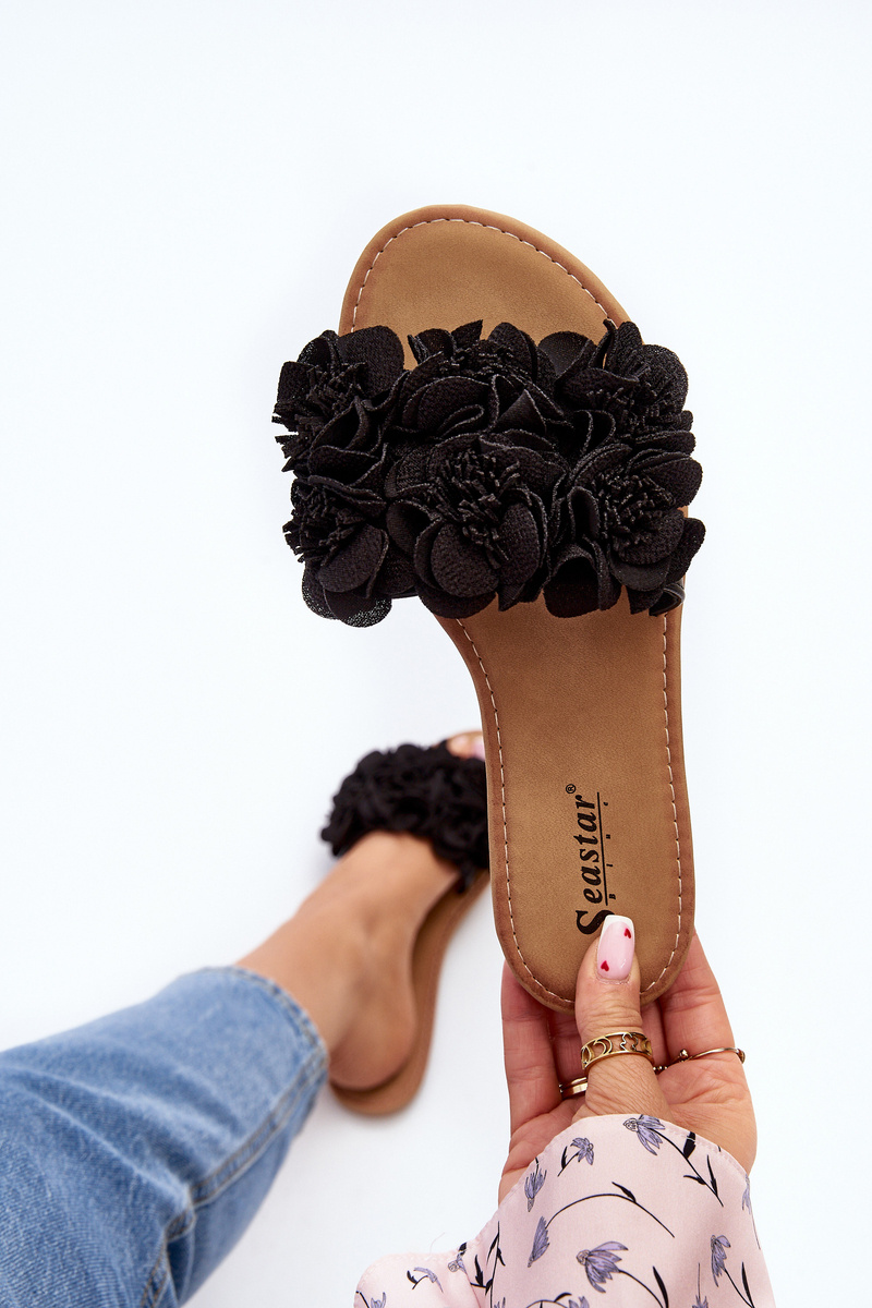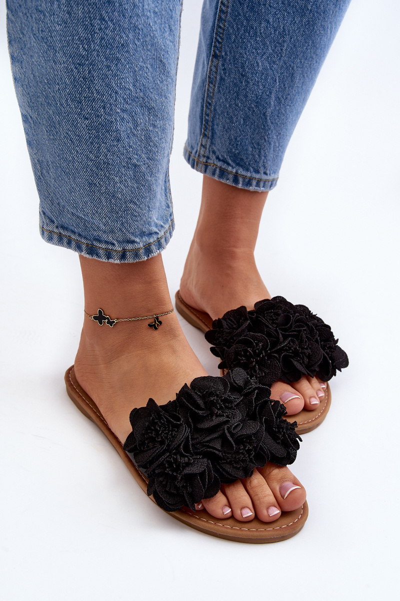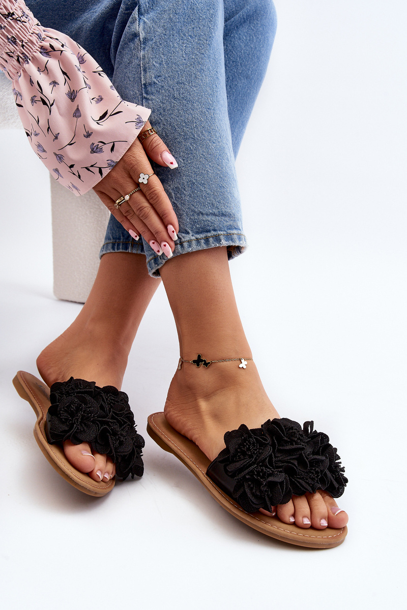 Damskie Klapki Z Kwiatkami Czarne Eelfan