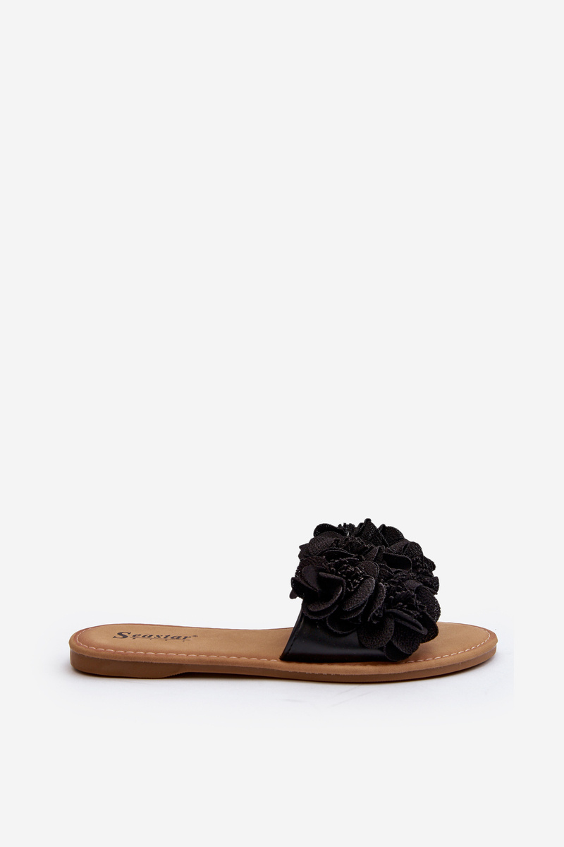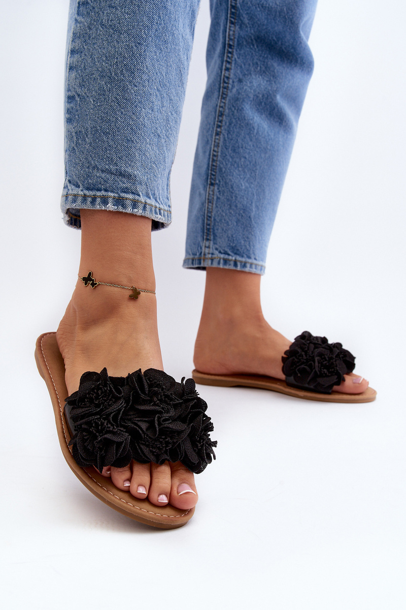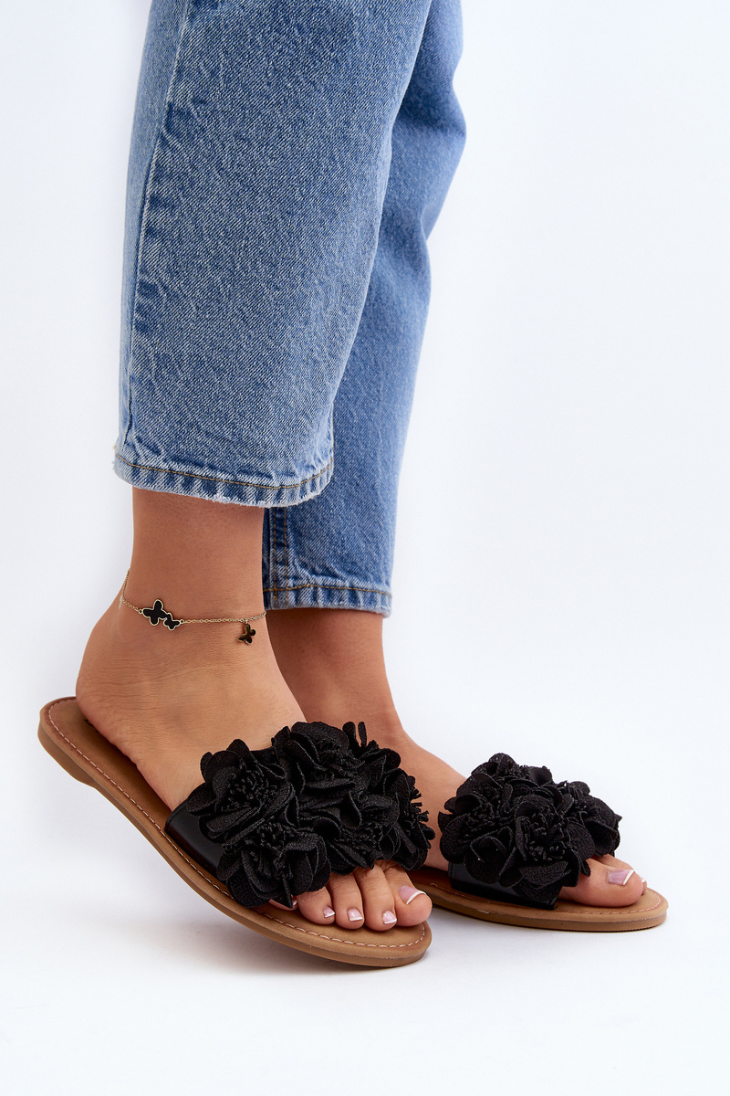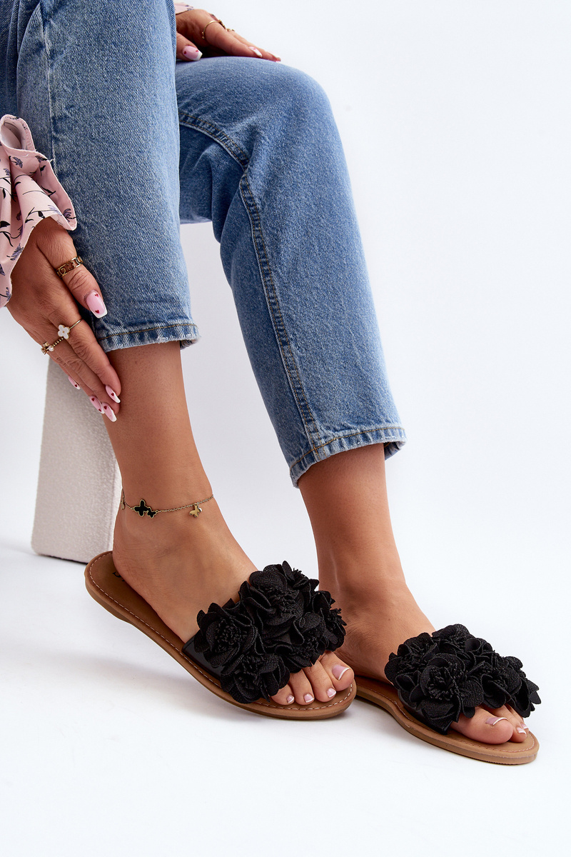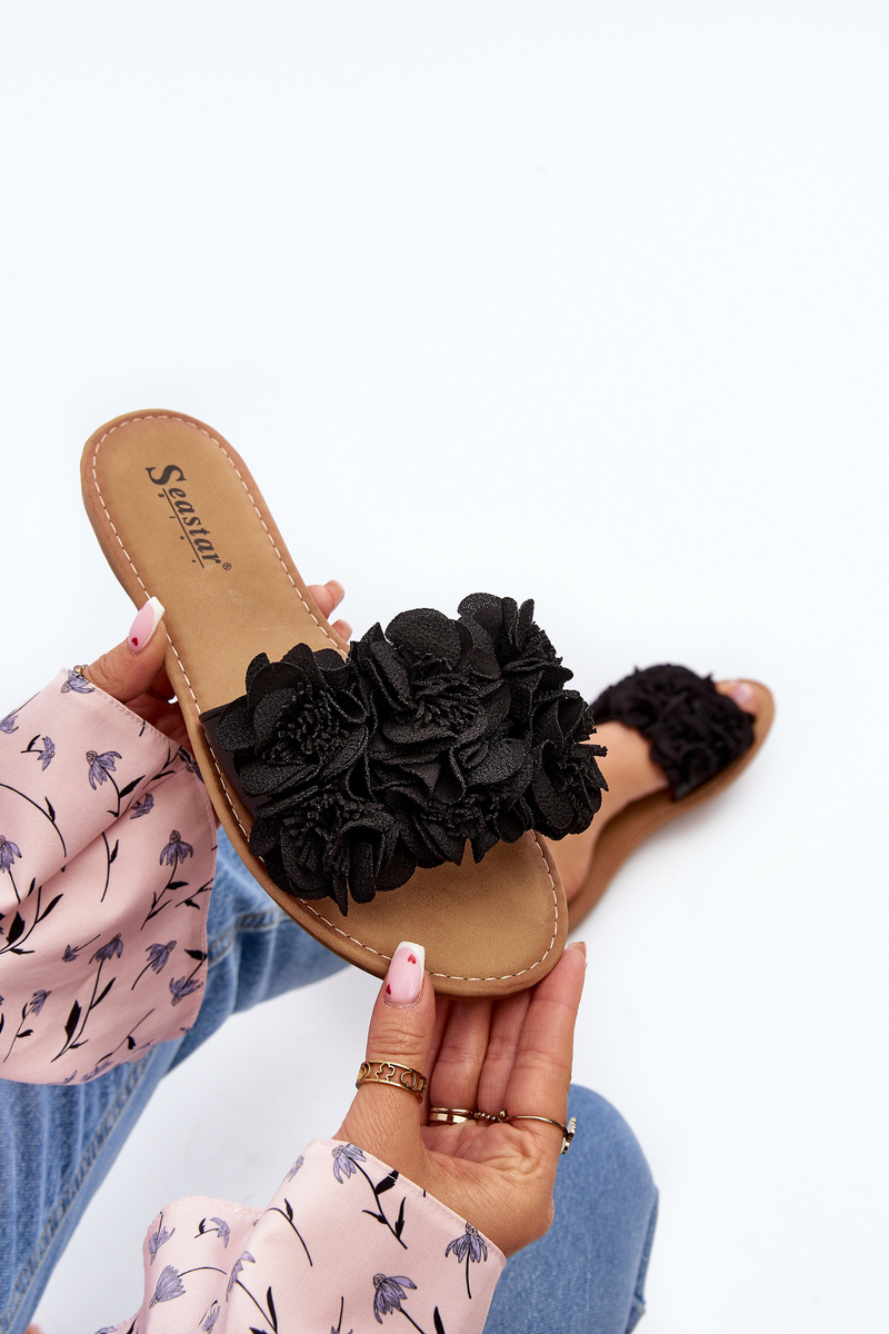Damskie Klapki Z Kwiatkami Czarne Eelfan