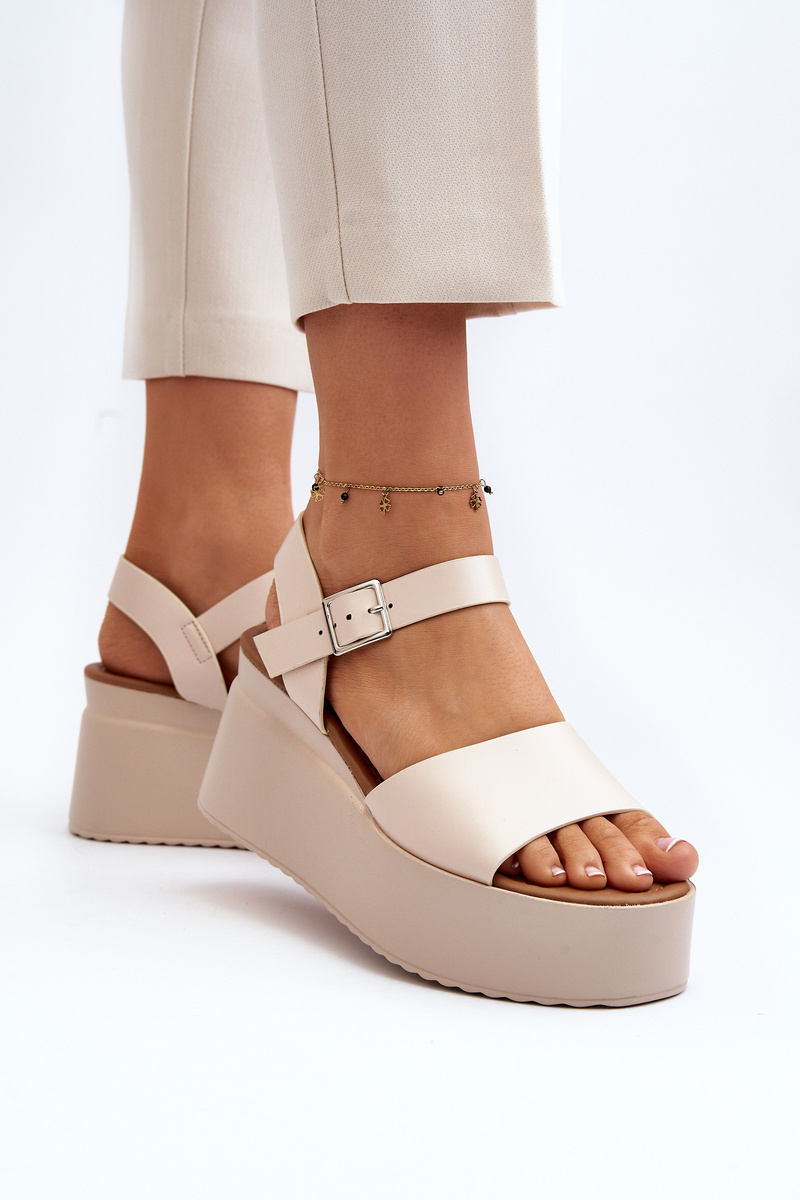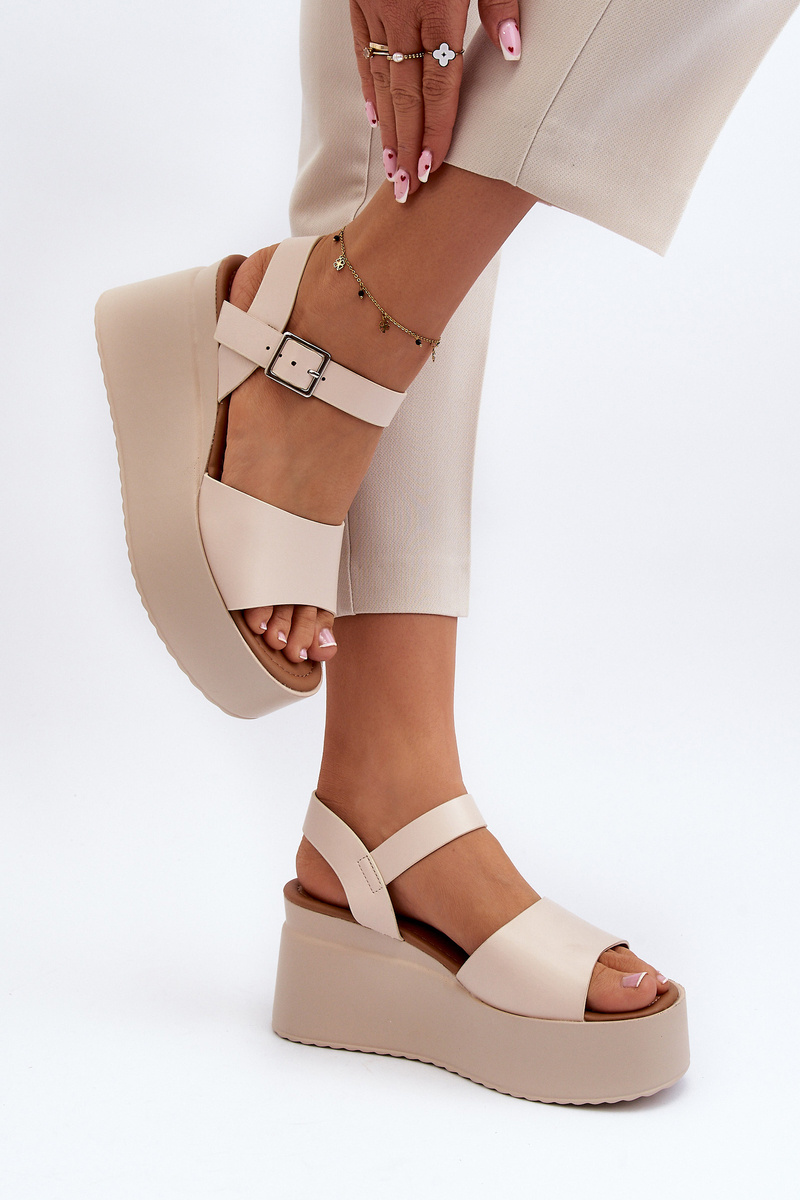 Damskie Sandały Na Koturnie Beżowe Geferia