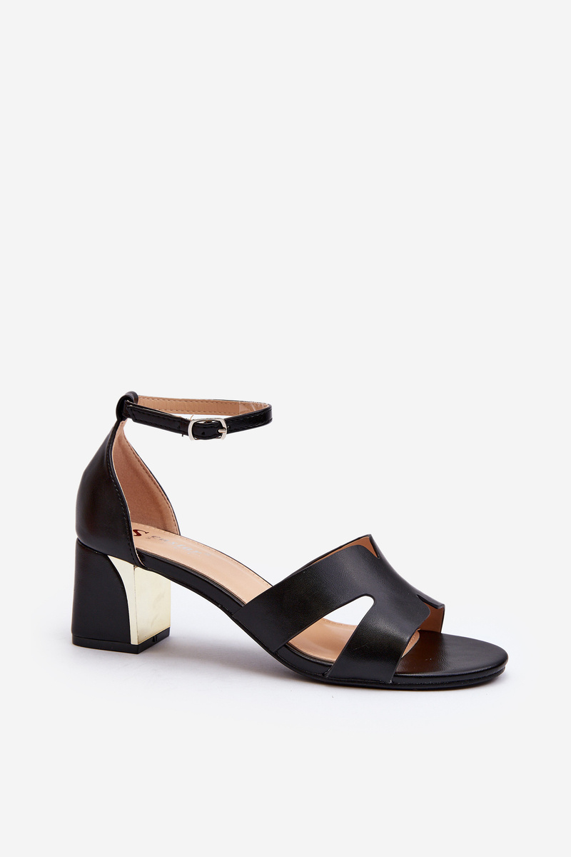 Sandały Damskie Na Obcasie Klocku Czarne Irivana