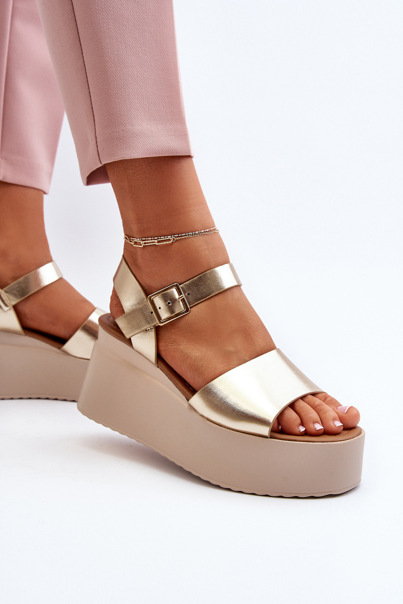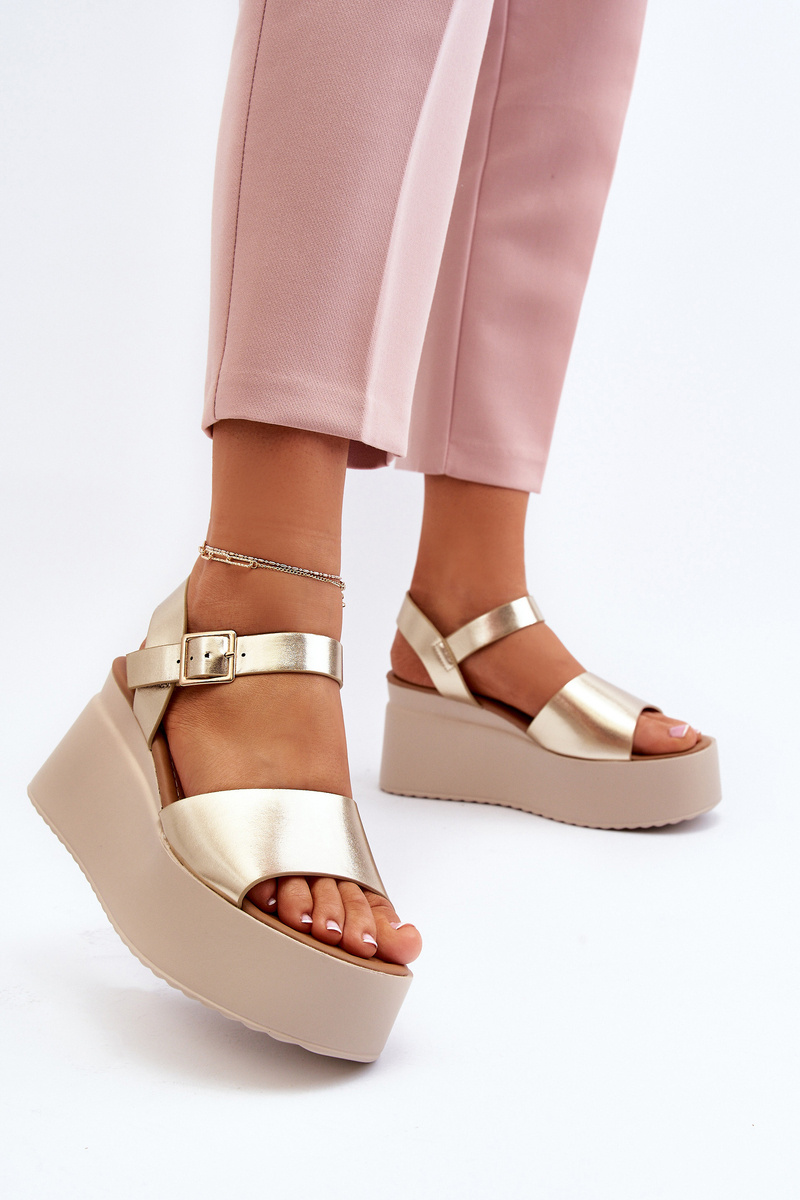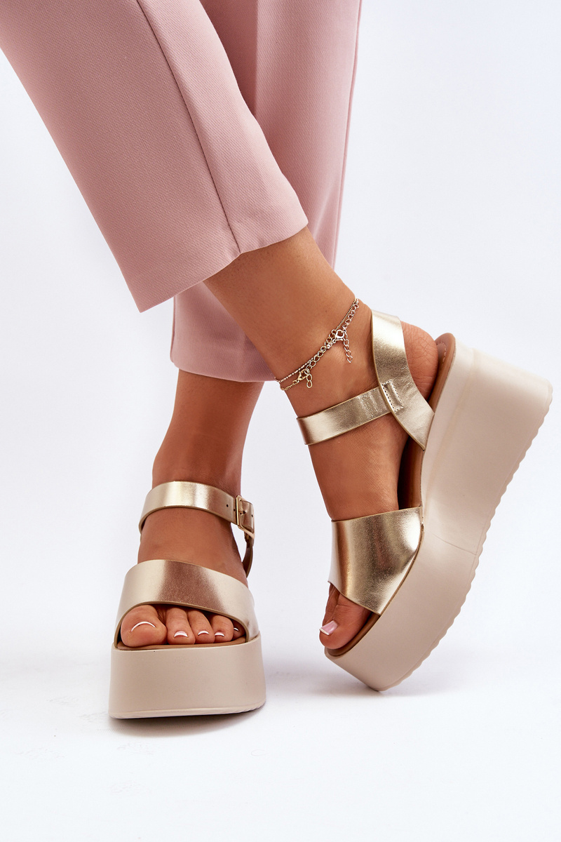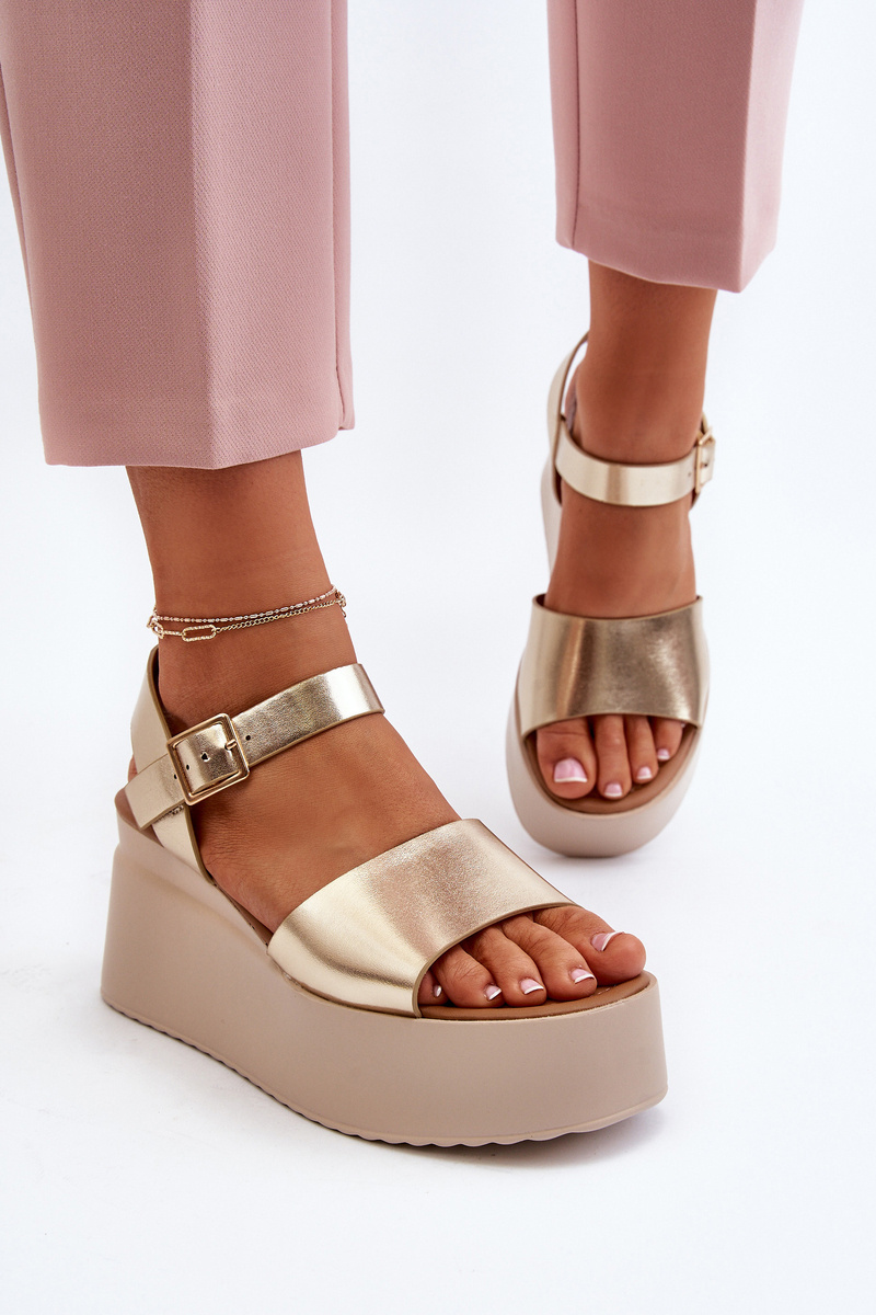 Sandały damskie wykonane z eko skóry. Osadzone na koturnie i platformie, co nie tylko dodaje im modnego wyglądu, ale także zapewnia stabilność podczas chodzenia. Zapinane na regulowany pasek ze sprzączką, łatwo dopasujesz je do swojej stopy. Przy wyborze rozmiaru prosimy sugerować się tabelą rozmiarów. Model ten będzie idealny na letnie spacery czy spotkania na świeżym powietrzu!