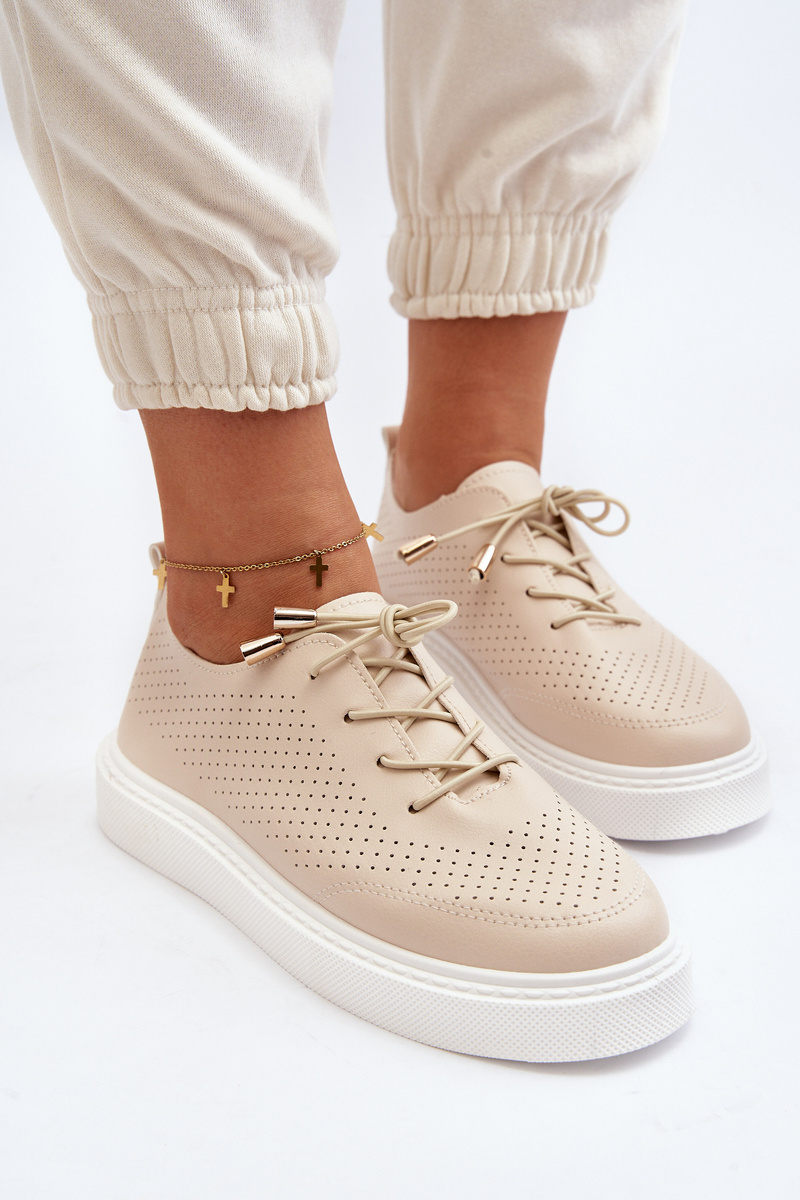 Ażurowe Trampki Damskie Beżowe Unassemia