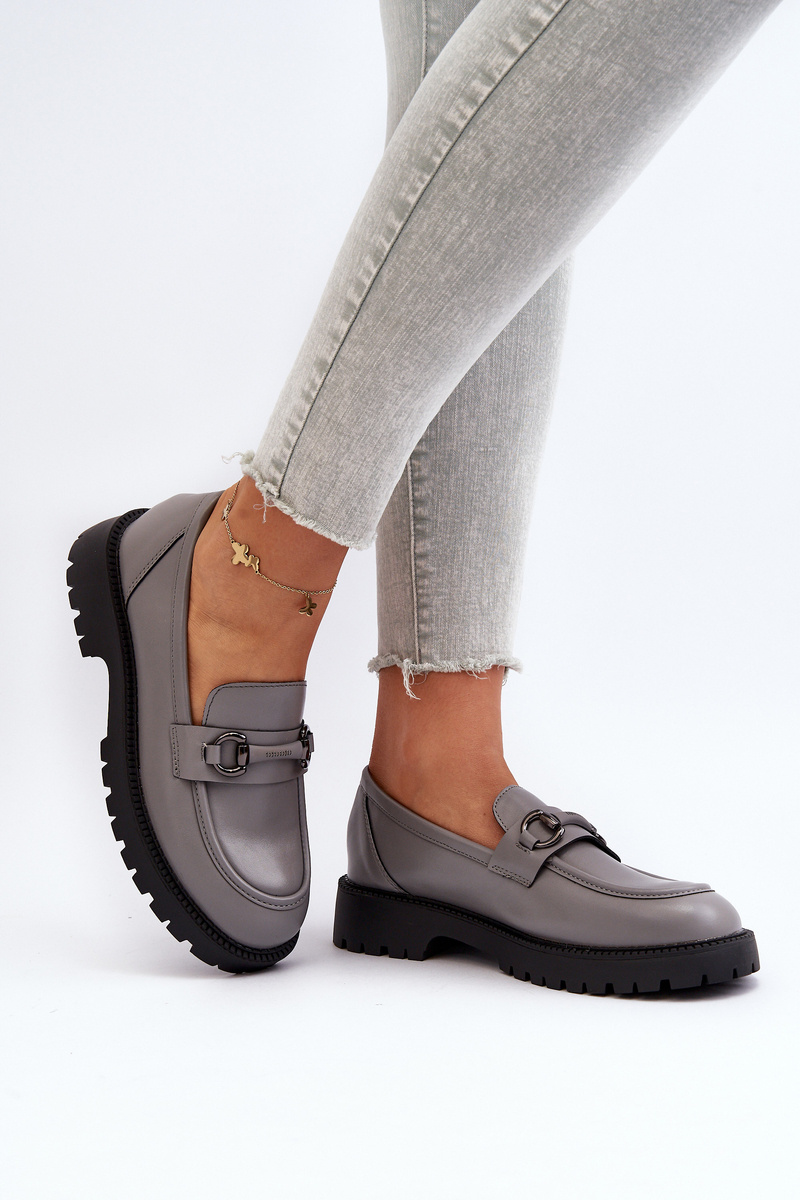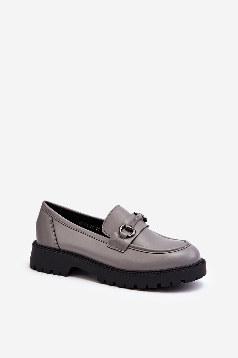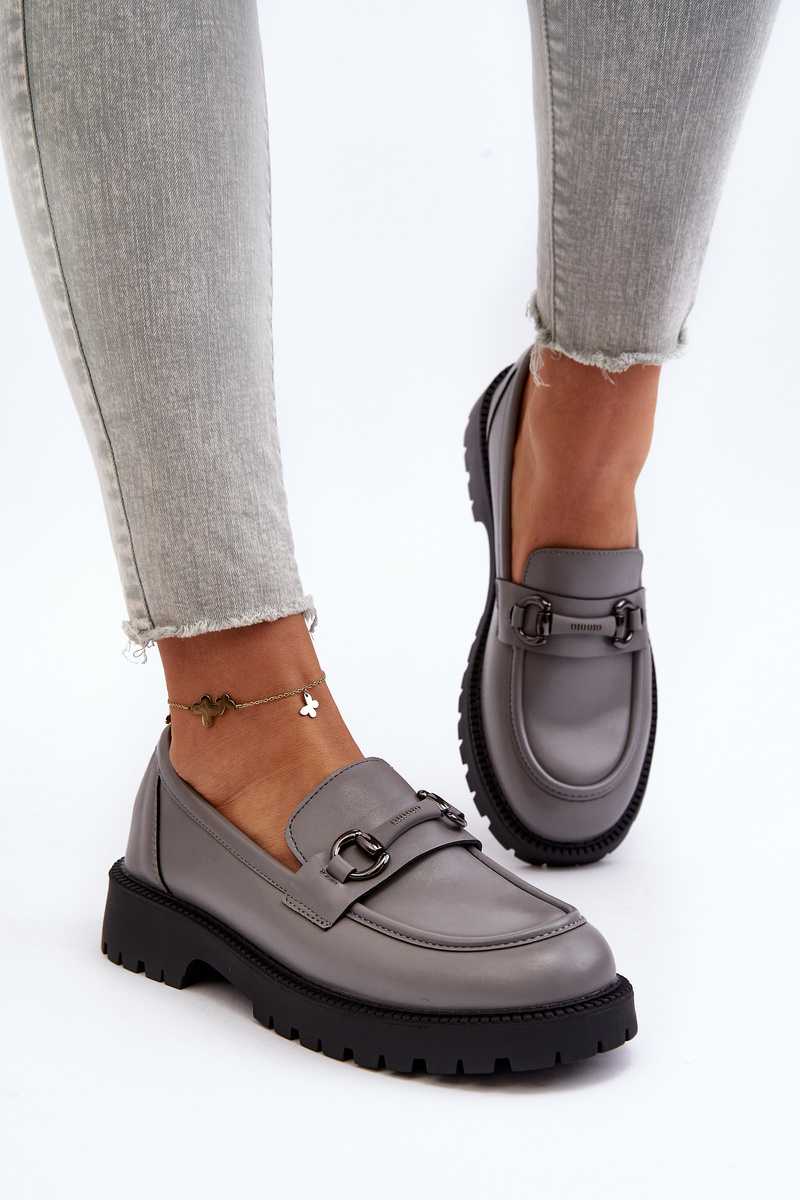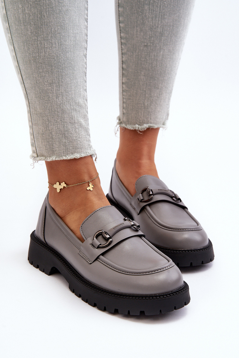 Damskie Mokasyny Eko Skórzane Szare Ledda