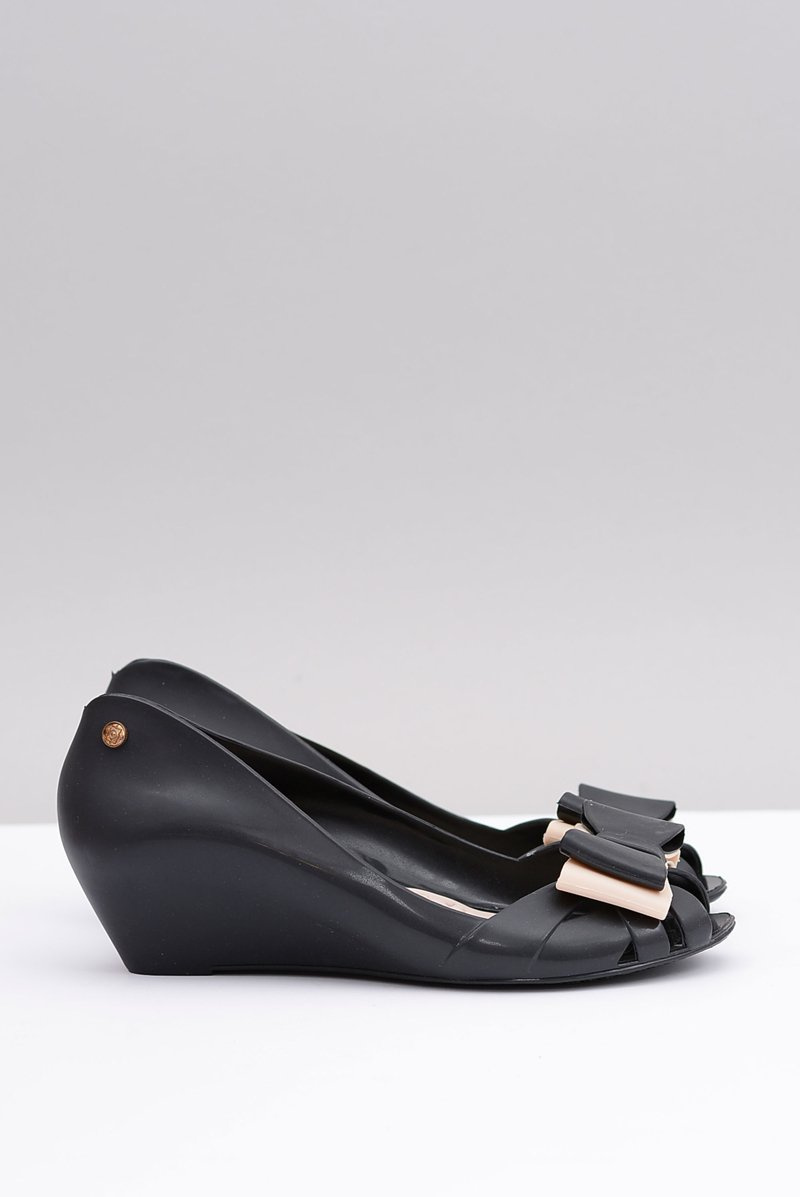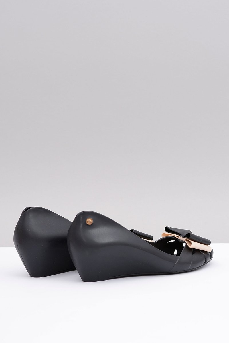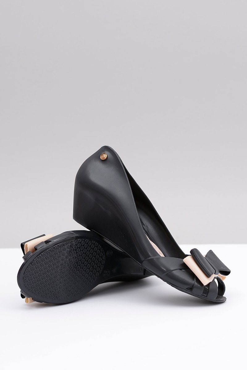 Lu Boo Czarne Gumowe Baleriny Na Koturnie Kokarda Lea