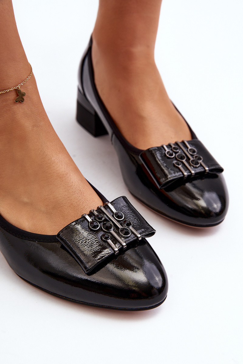 Lakierowane Czółenka Na Klocku Czarne Ilvanna