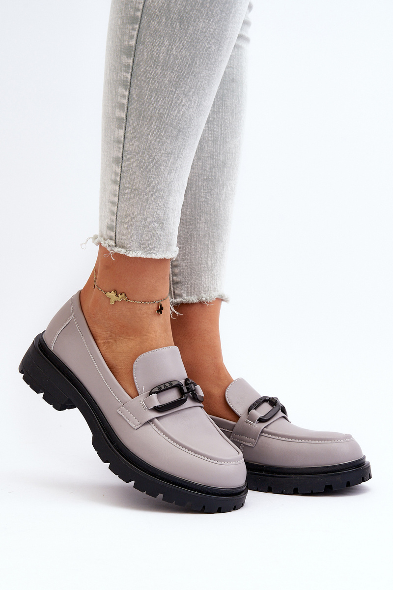 Damskie Mokasyny Ze Skóry Naturalnej Szare Imbleria