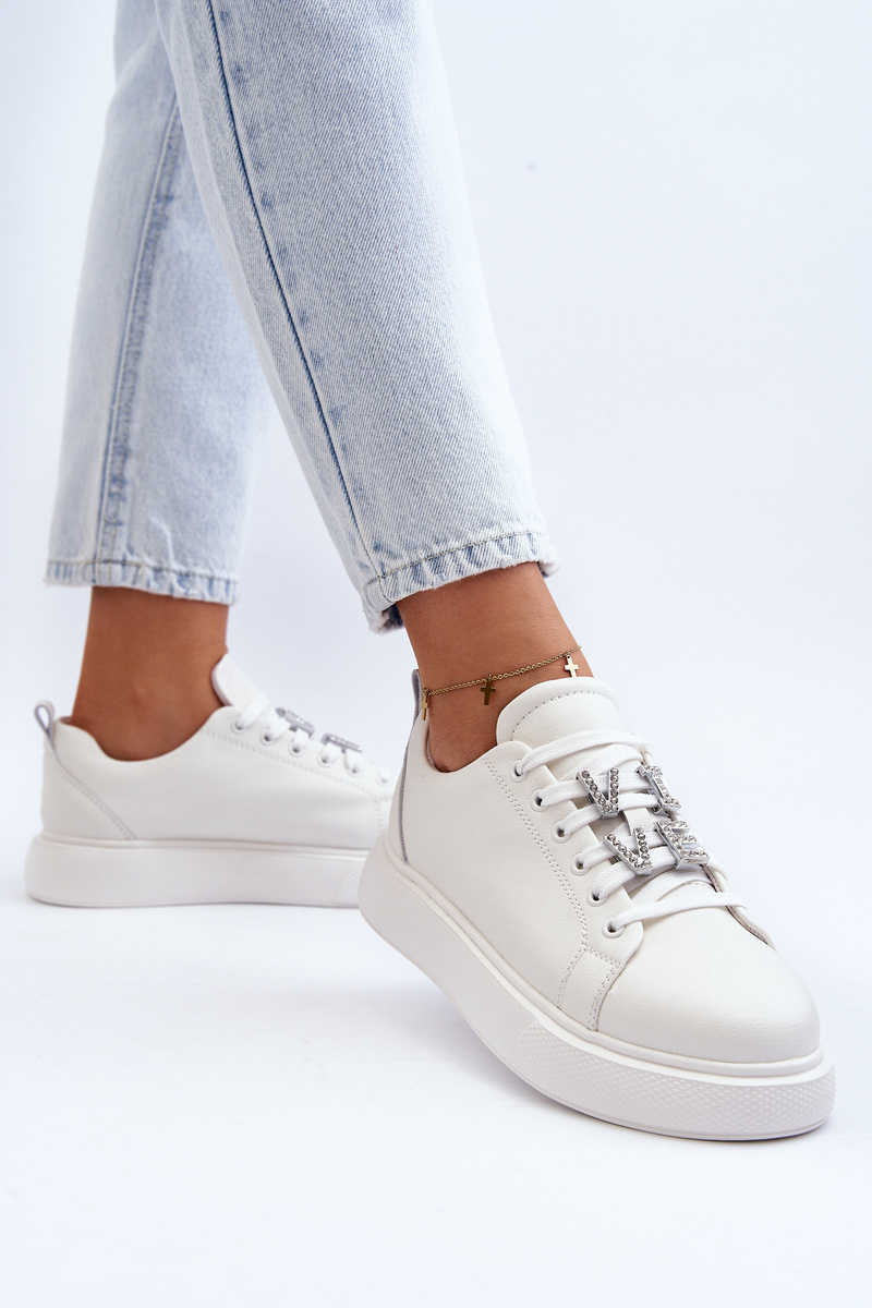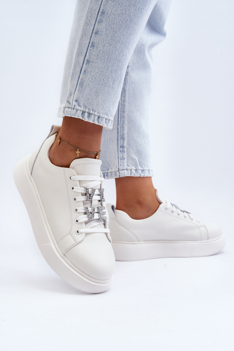 Damskie Sneakersy Skórzane Z Ozdobami Białe Dysuria