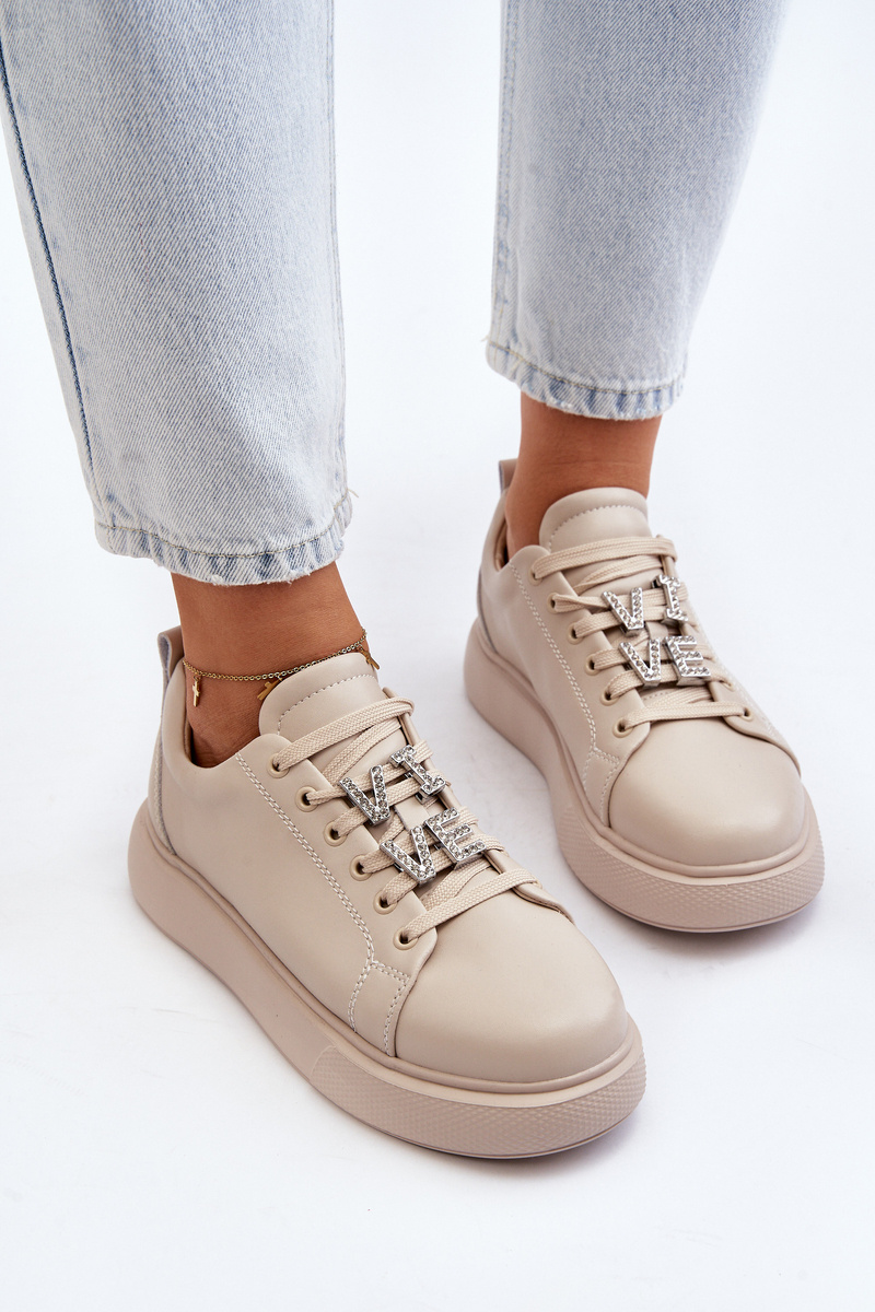 Damskie Sneakersy Skórzane Z Ozdobami Beżowe Dysuria