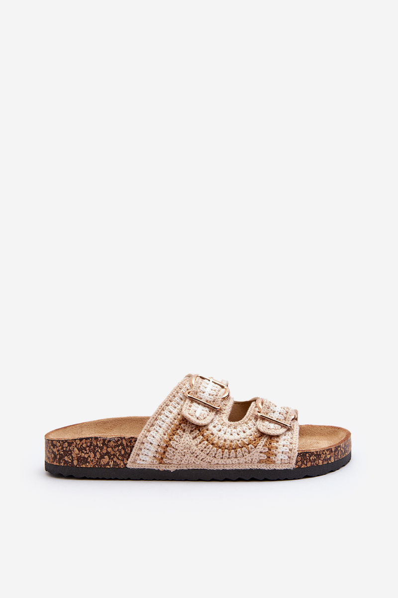 Damskie Klapki Na Korkowej Podeszwie Beżowe Fannea