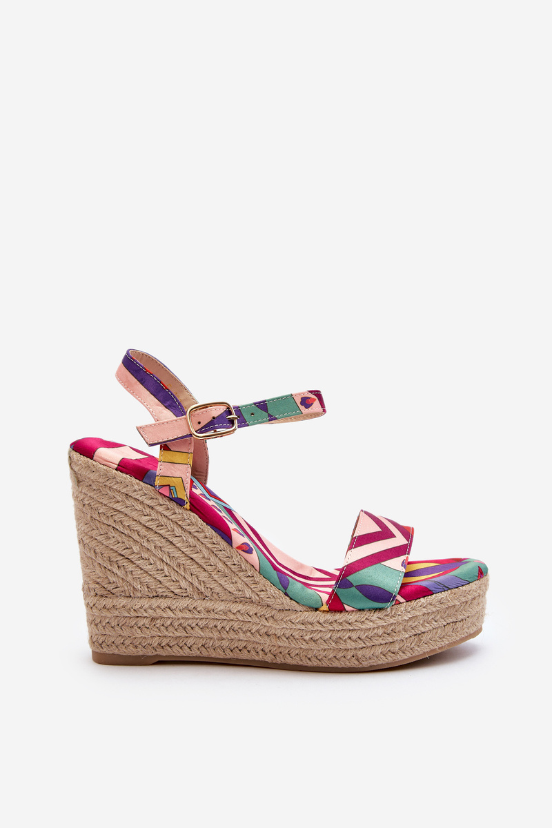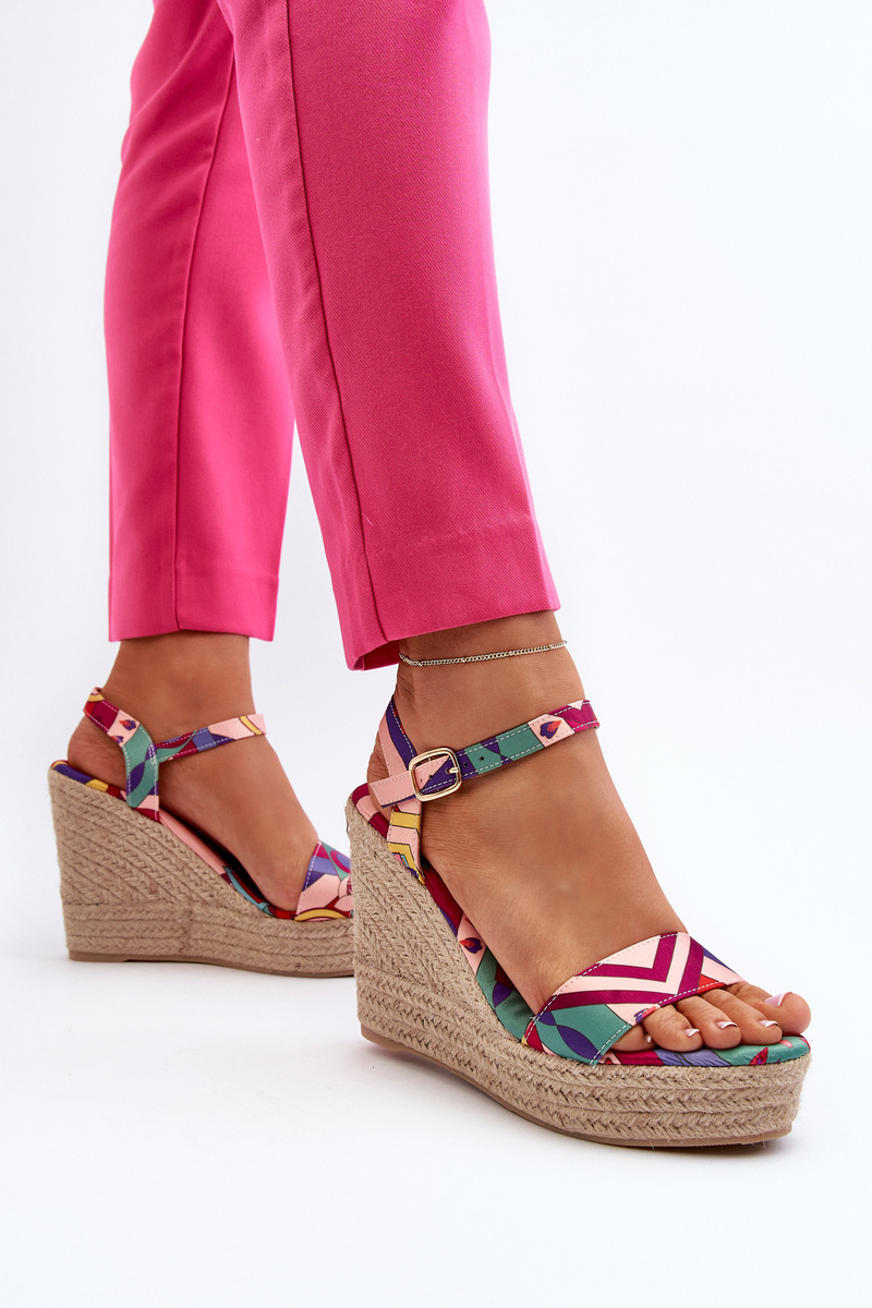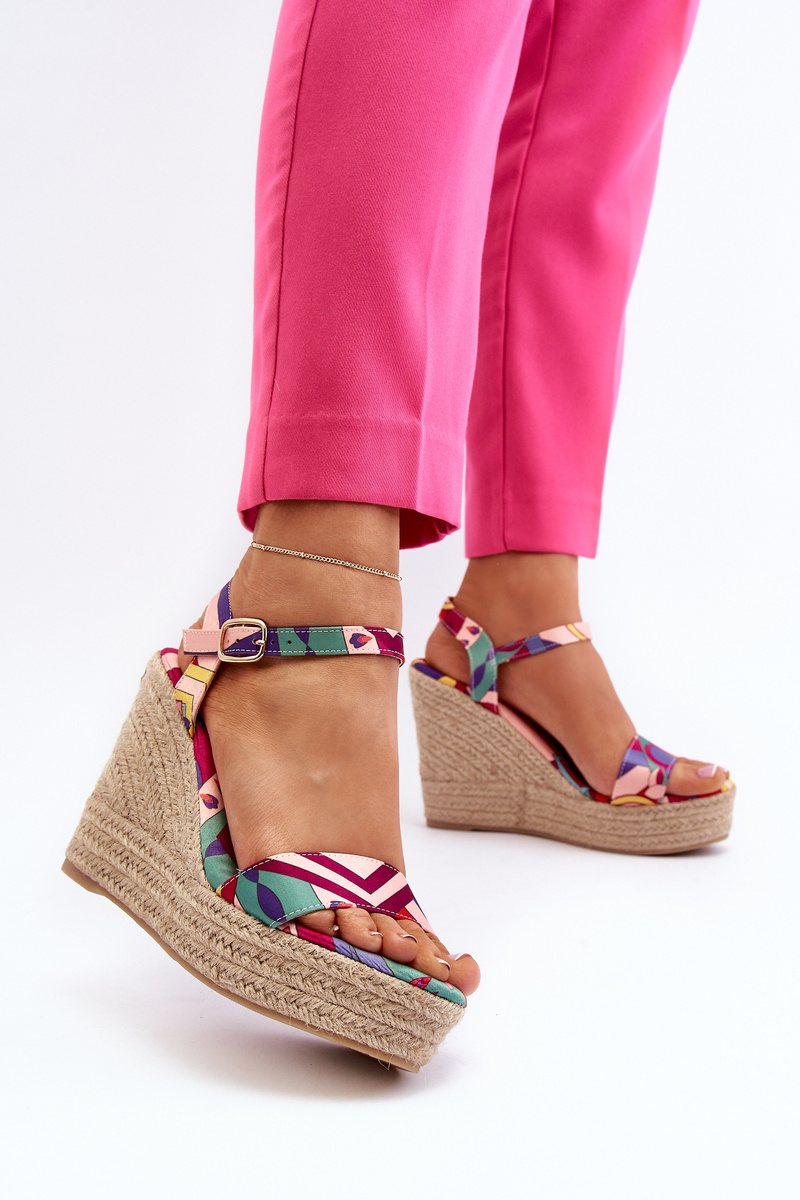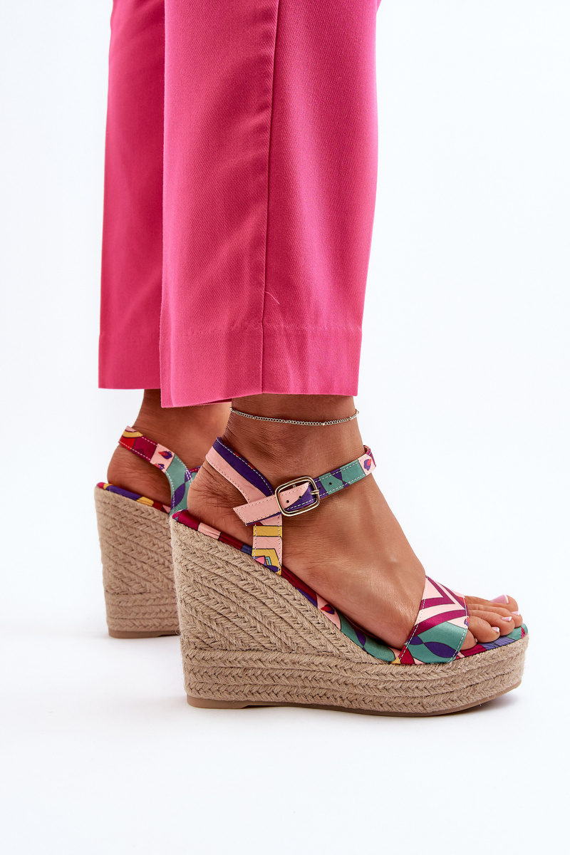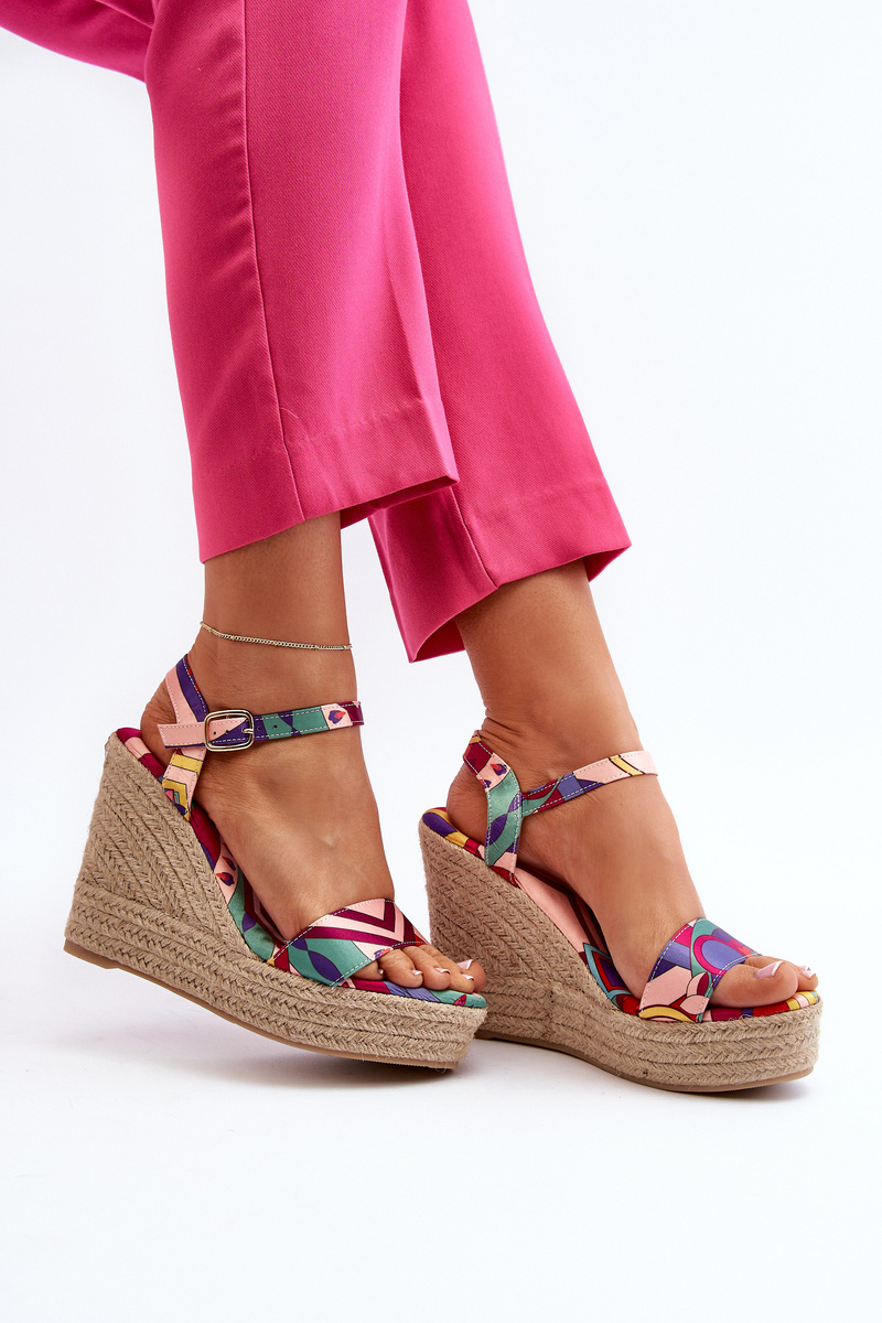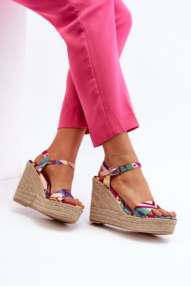 Wzorzyste Sandały Na Koturnie Z Plecionki Multikolor Anihazra