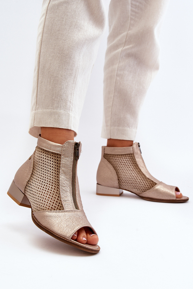 Skórzane Botki Damskie Na Płaskim Obcasie Z Odkrytymi Palcami Maciejka 06413-25 Złote