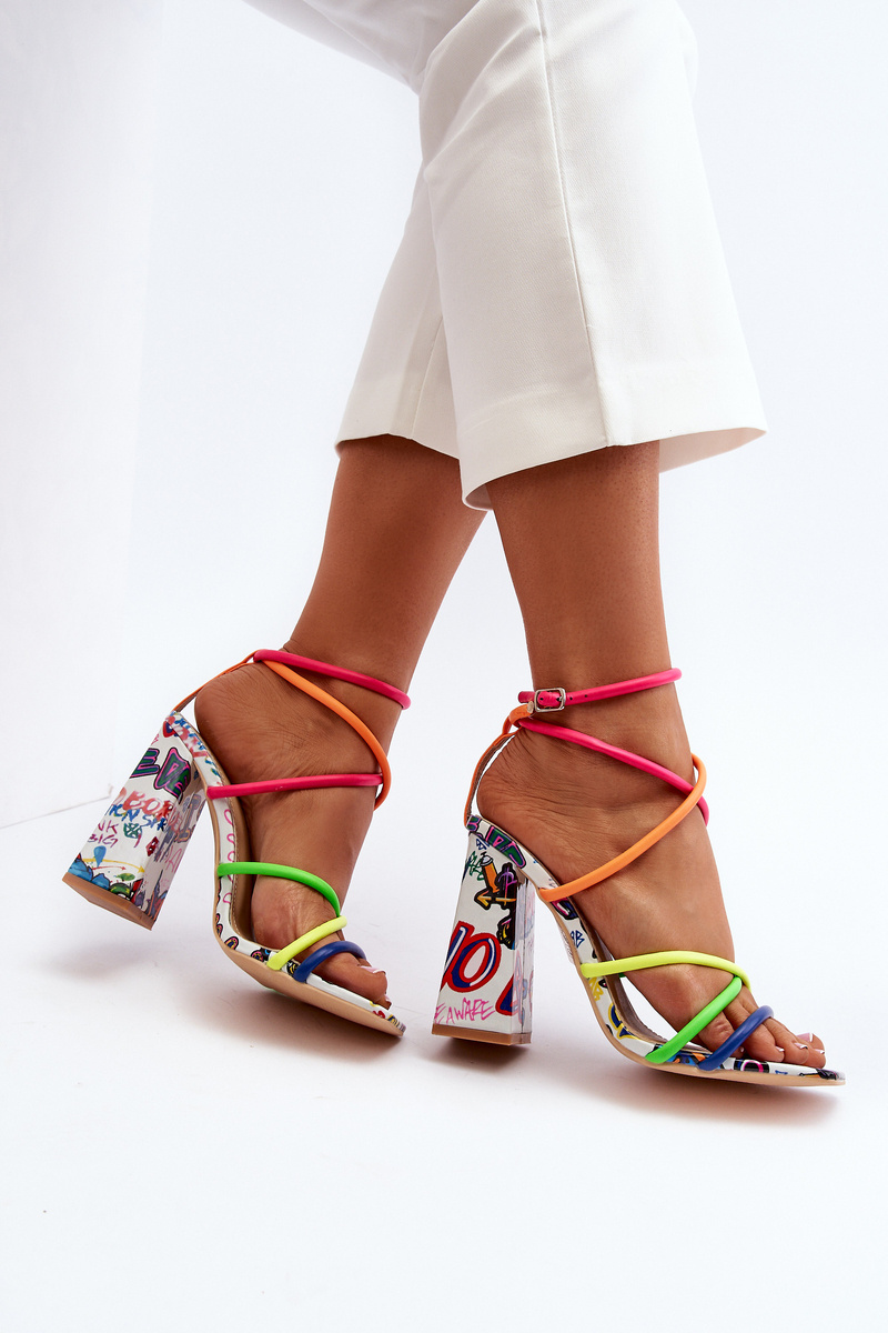 Cudowne sandałki damskie zostały wykonane z eko skóry. Ten ciekawy fason pięknie prezentuje się na nodze. Miękka wkładka z eko skóry zapewni komfort przez dłuższy czas. Obcas w postaci słupka szerszego u dołu. Sandałki posiadają regulowany pasek zapinany na sprzączkę. Idealne na imprezę, uroczystość rodzinną czy randkę! Koniecznie powinnaś je mieć! Przy wyborze rozmiaru prosimy sugerować się tabelą rozmiarów.
