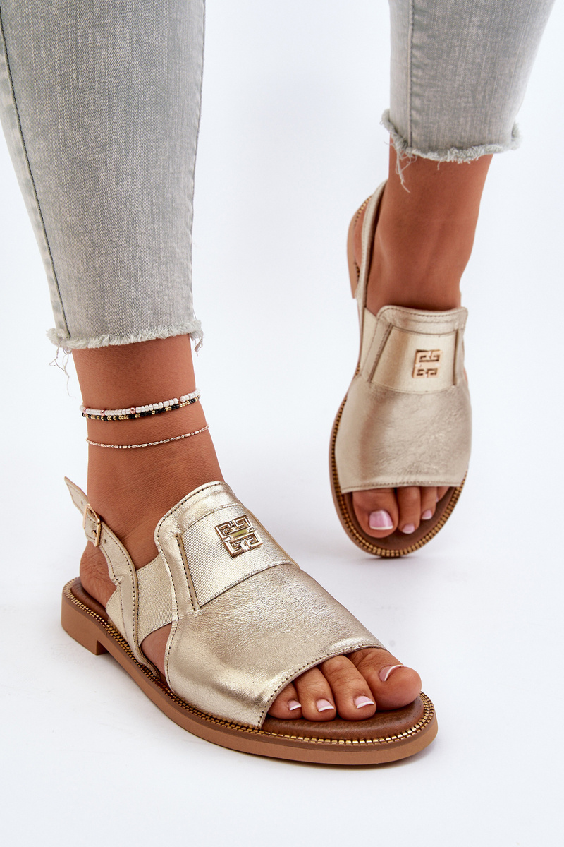 Zazoo 40385 Damskie Skórzane Sandały Złote