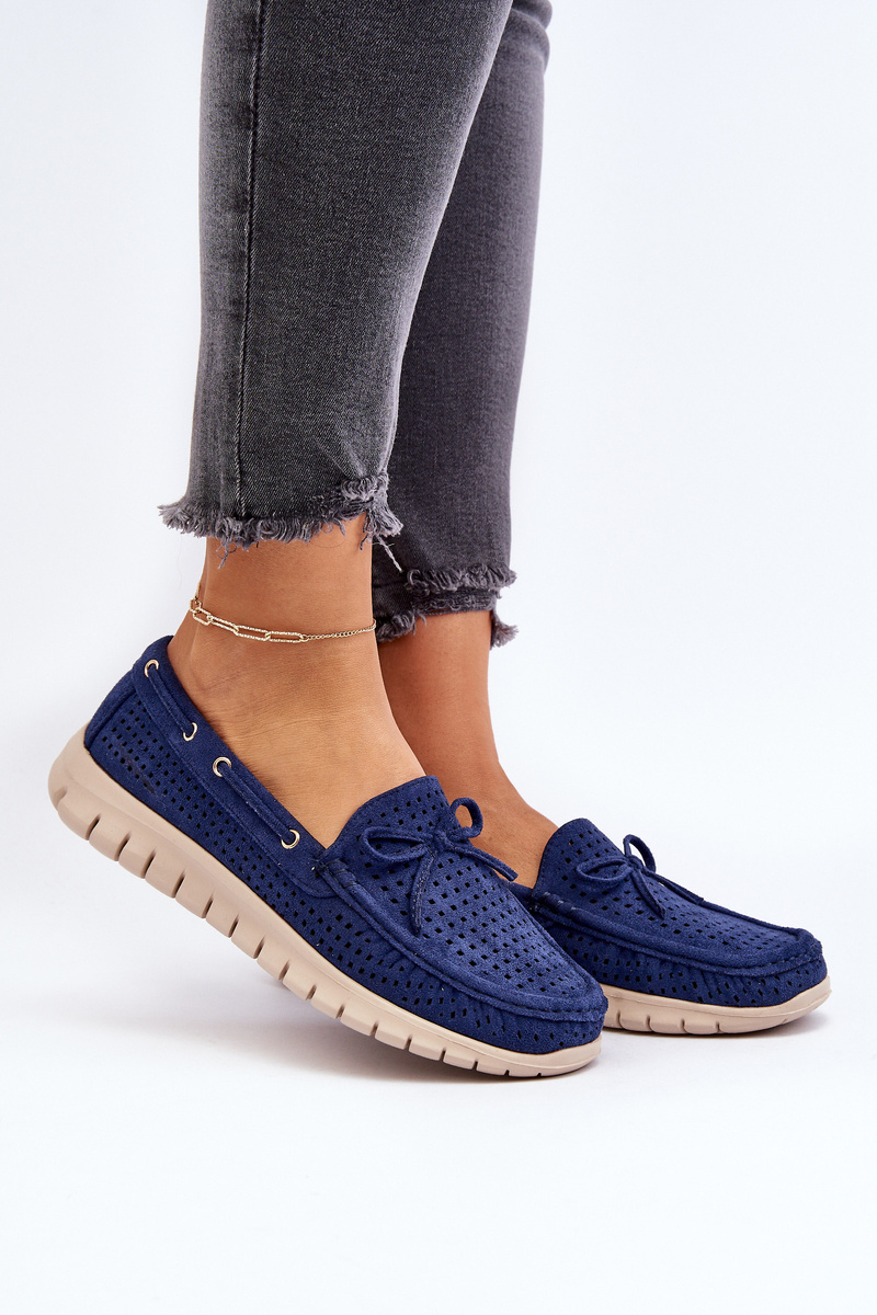 Mokasyny Damskie Z Kokardą Granatowe Reece