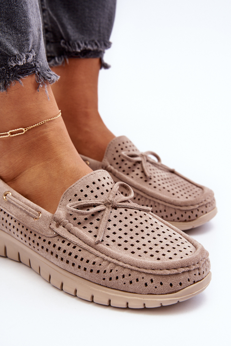Mokasyny Damskie Z Kokardą Beżowe Reece