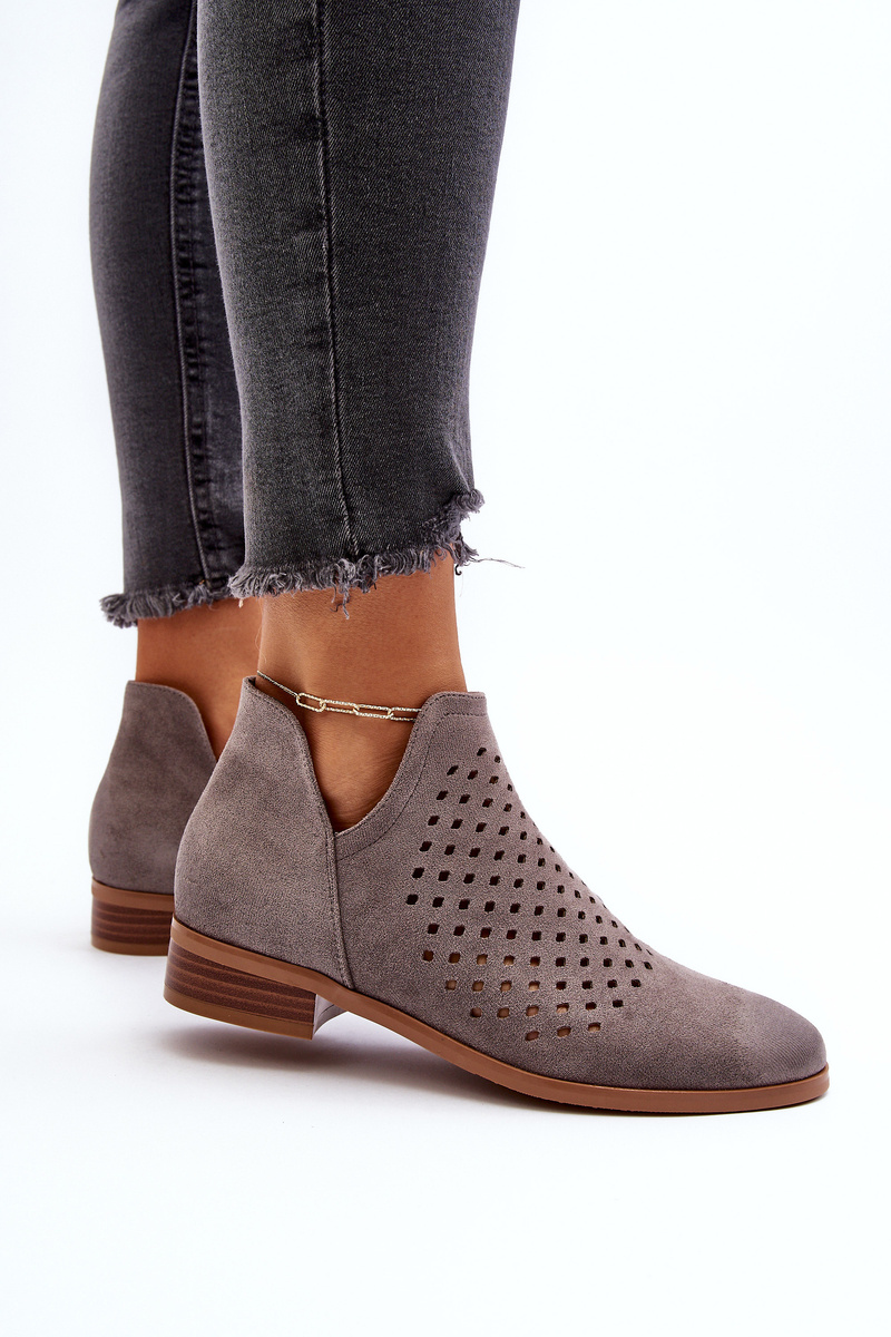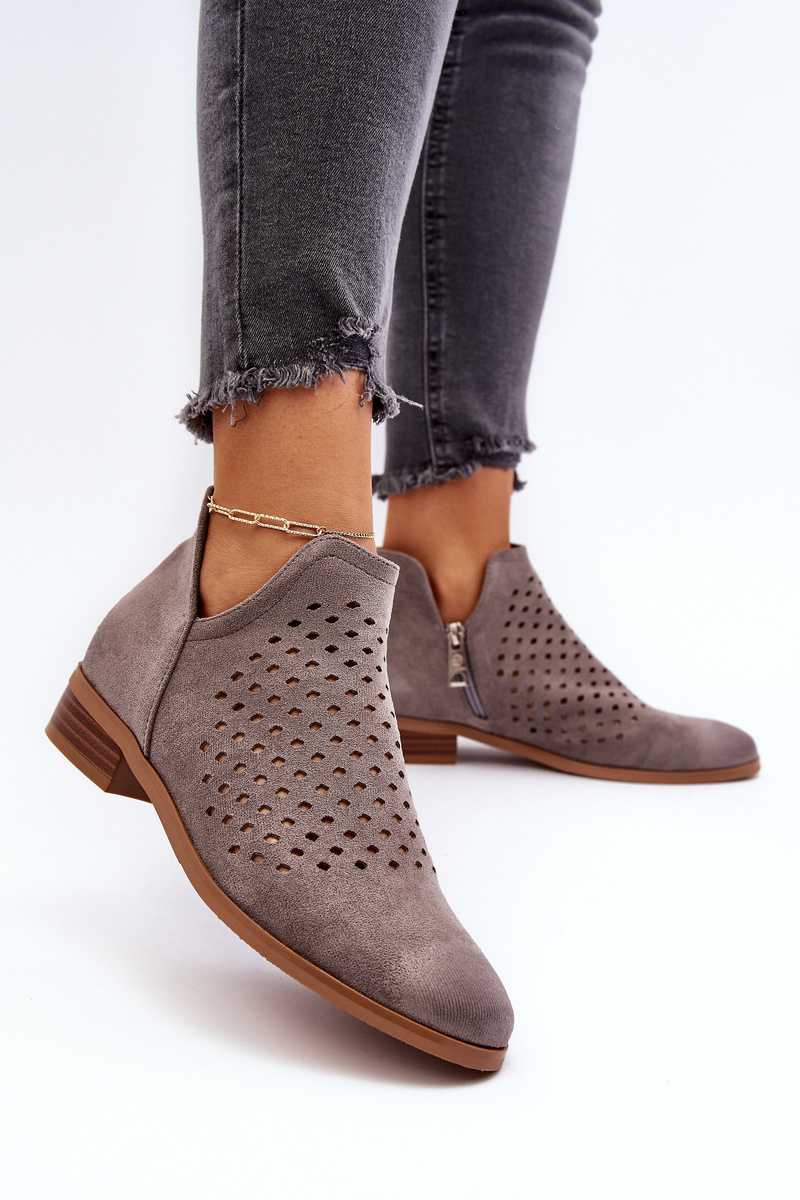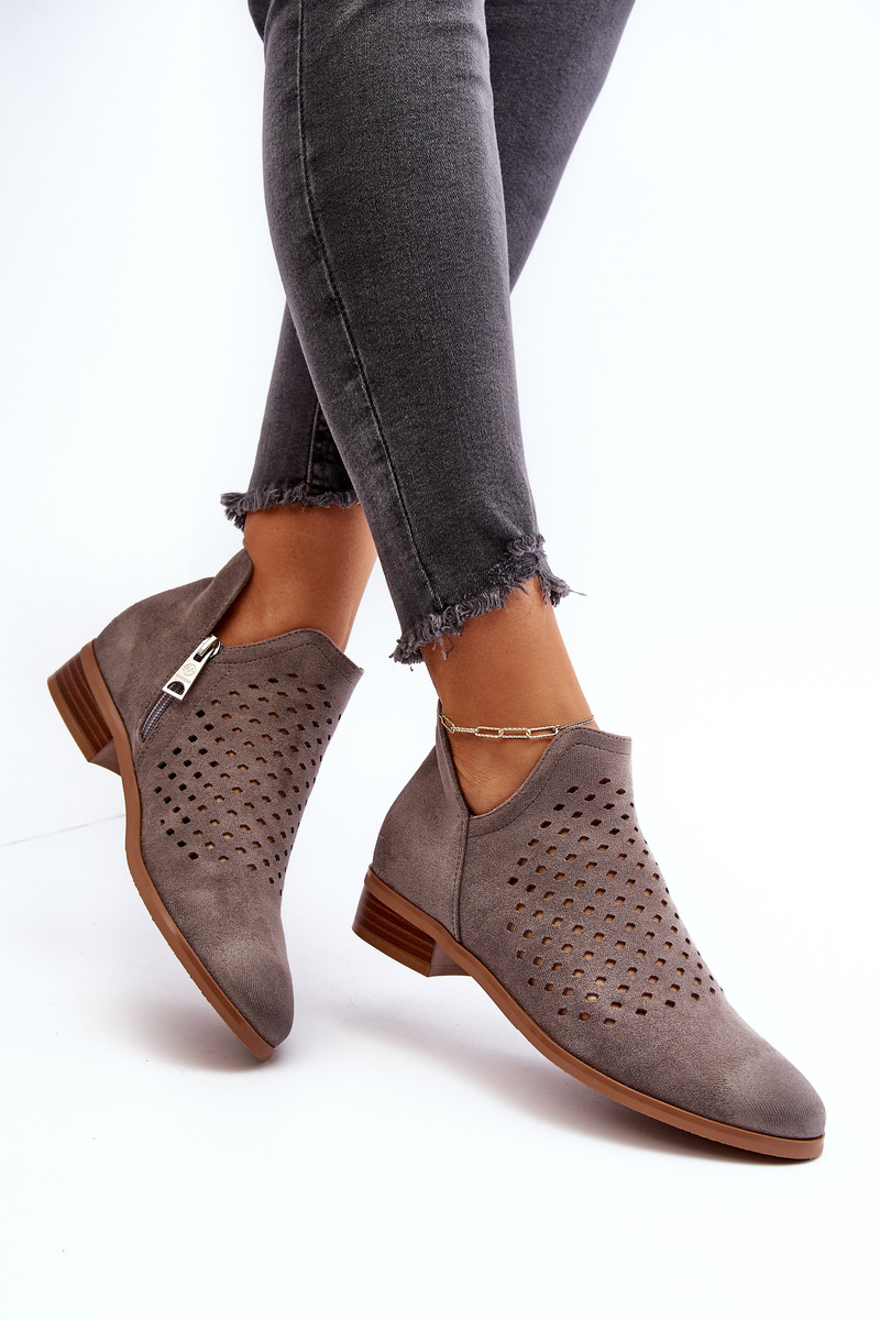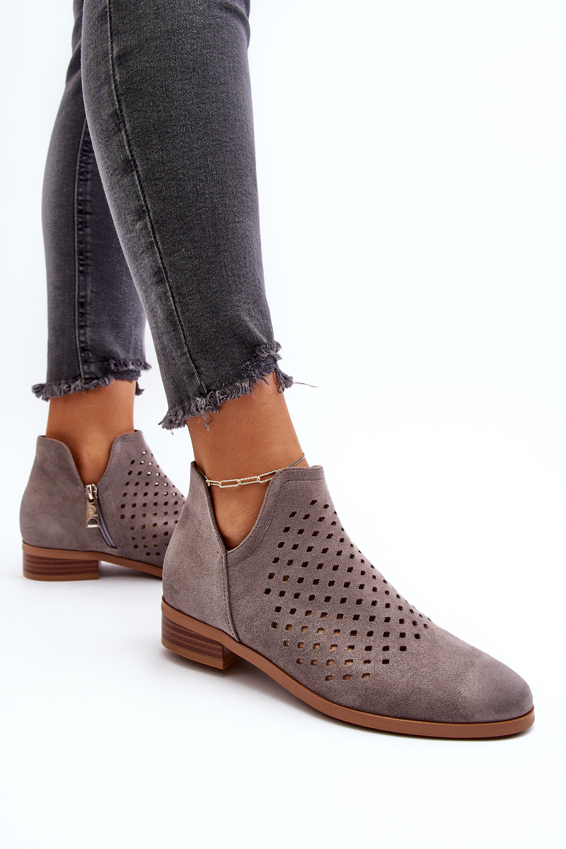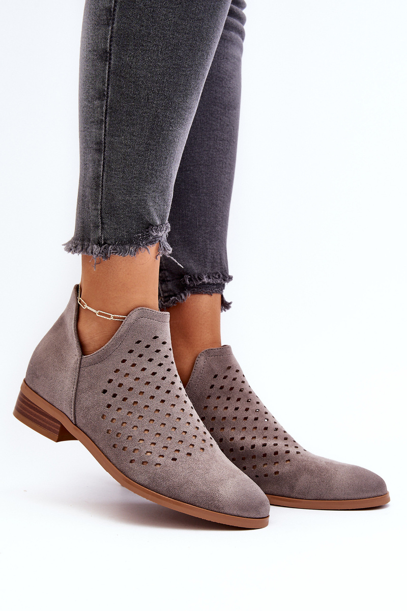 Niskie Botki Damskie Na Płaskim Obcasie Szare Janetris