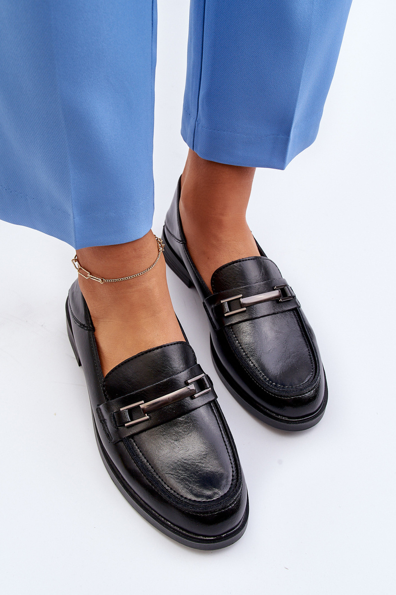 Mokasyny Damskie Skórzane Czarne Nurea