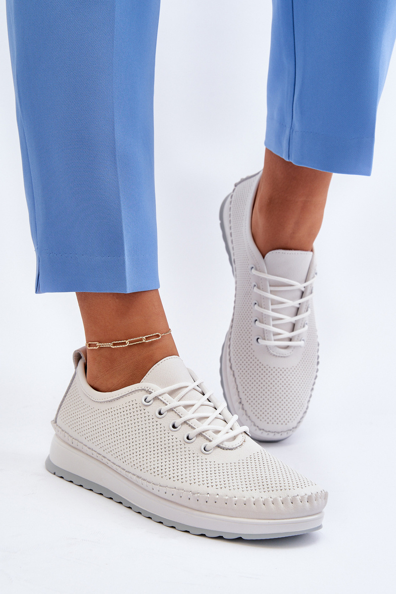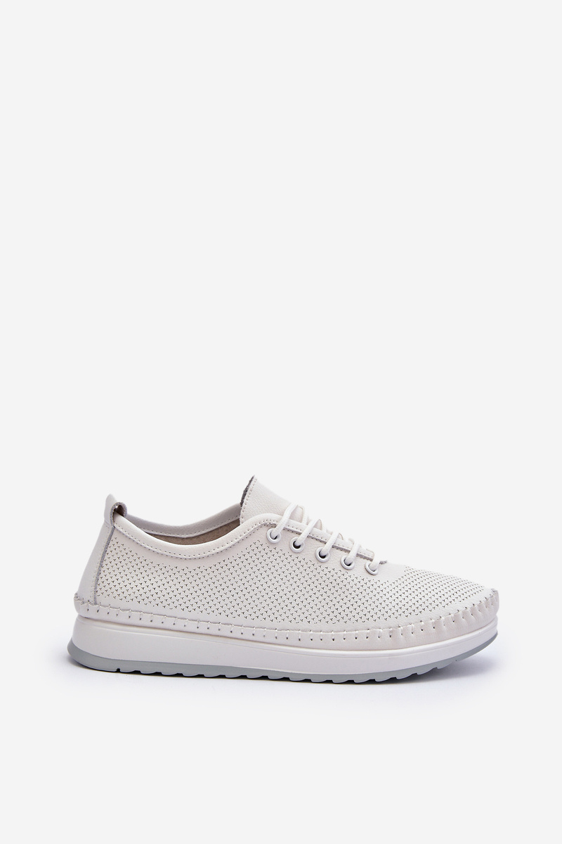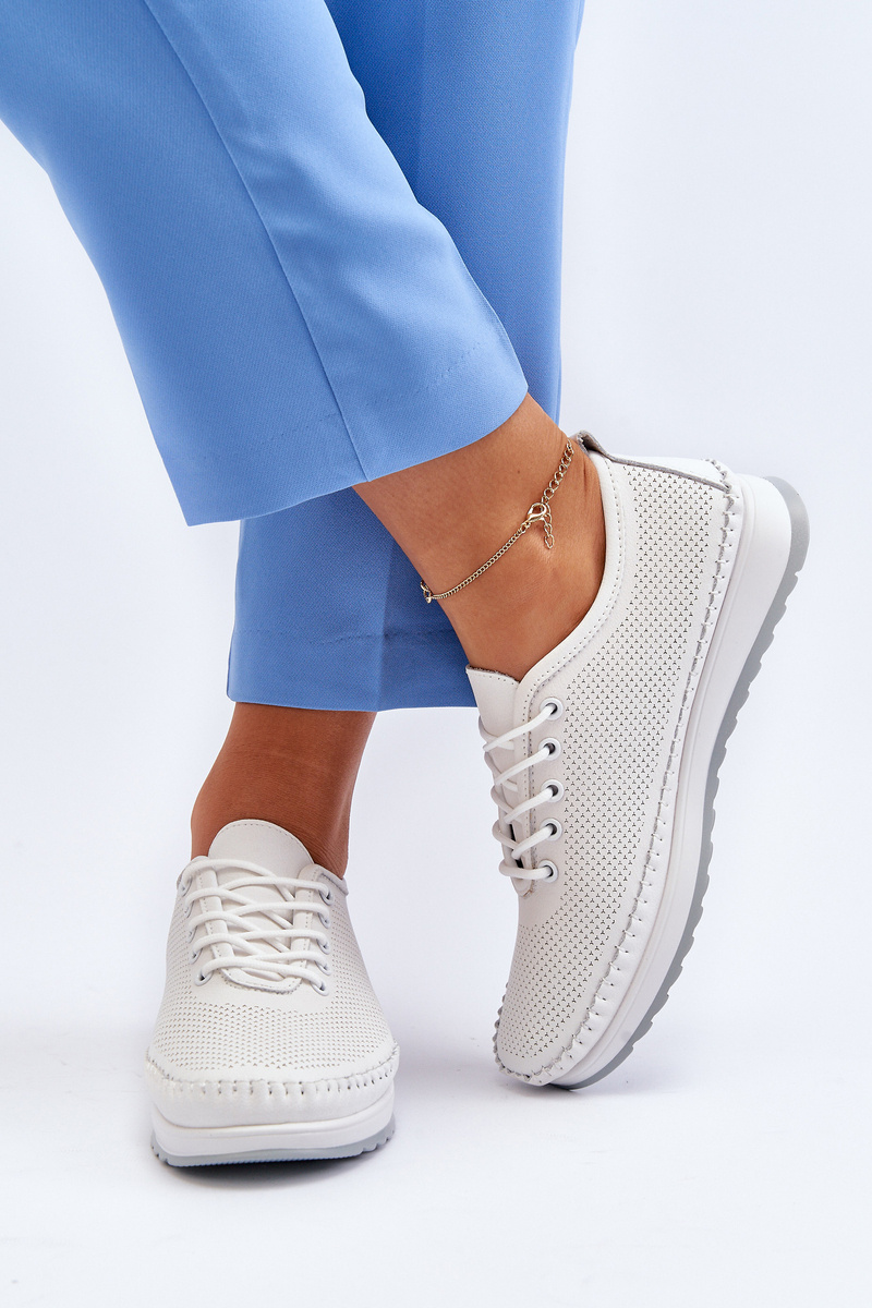 Skórzane Sportowe Buty Trampki Damskie Białe Lalnai