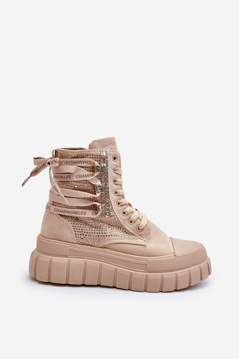 Wysokie Trampki Damskie Na Masywnej Platformie Beżowe Wonise