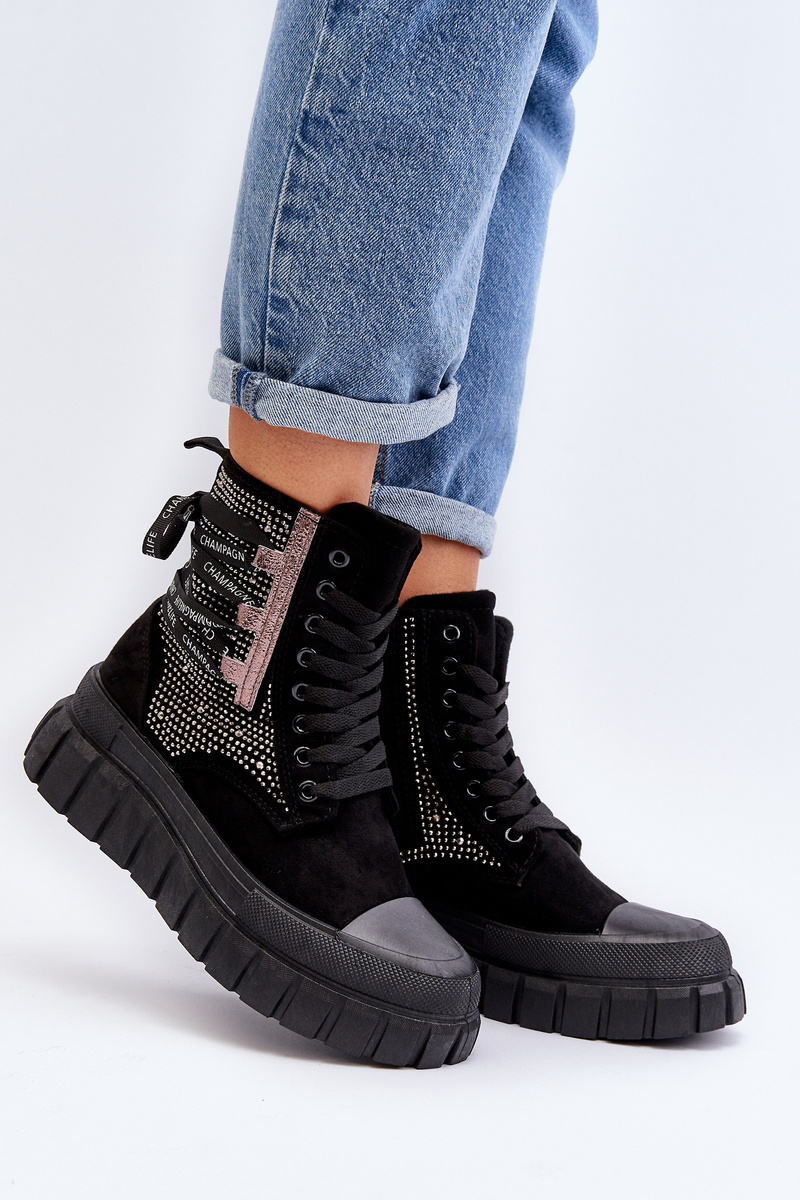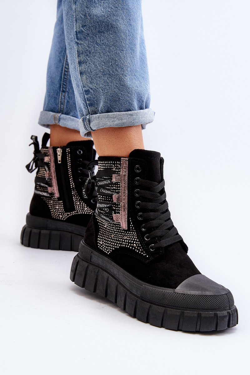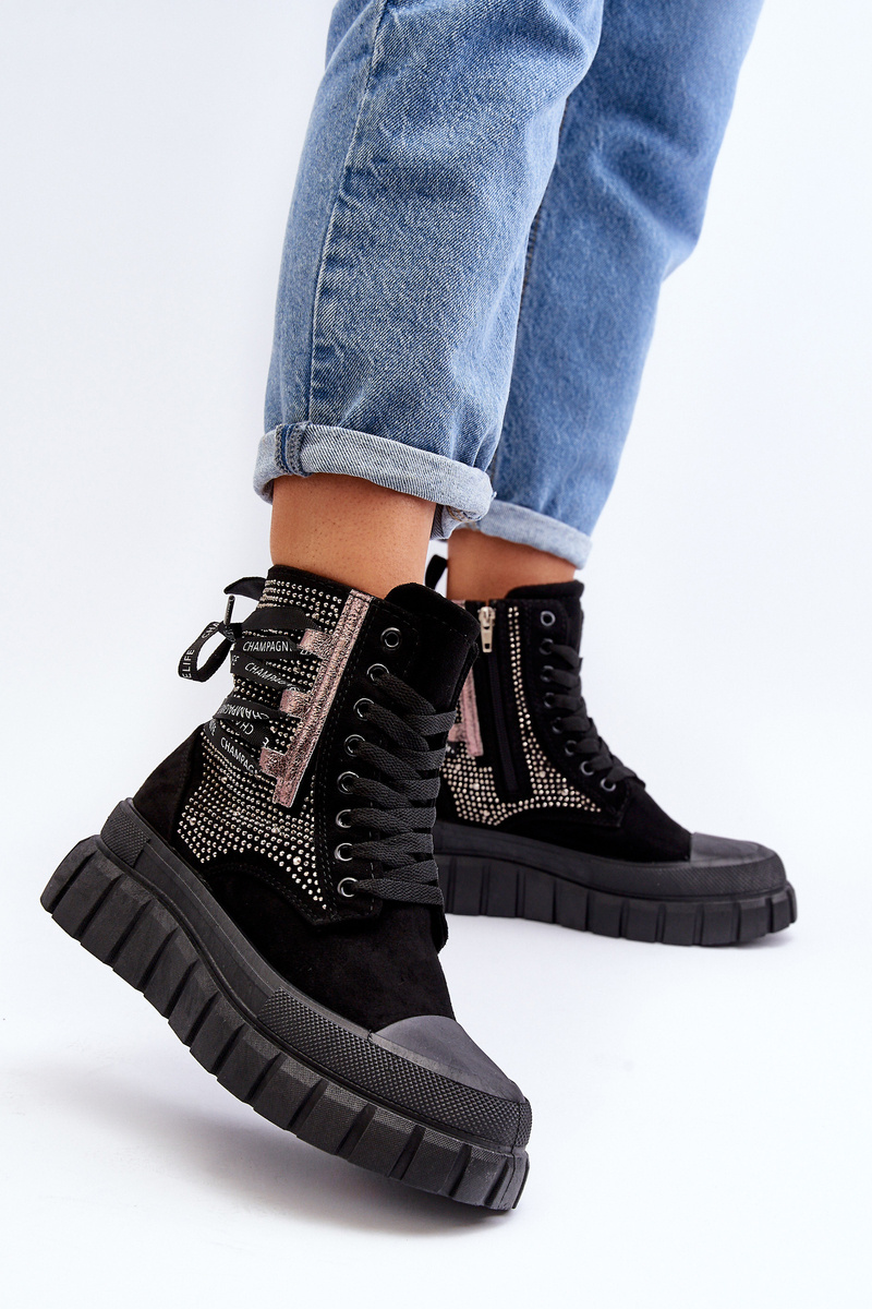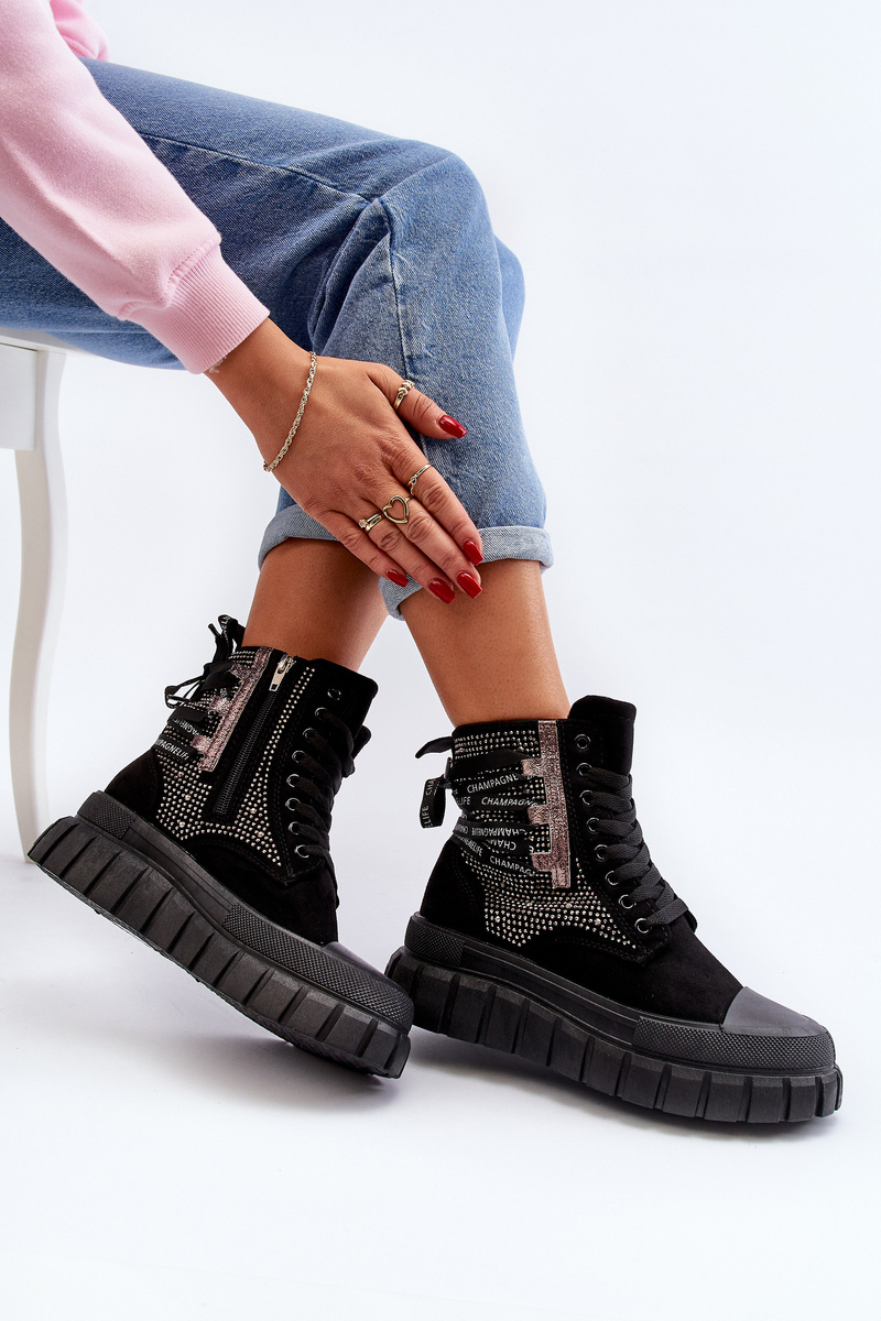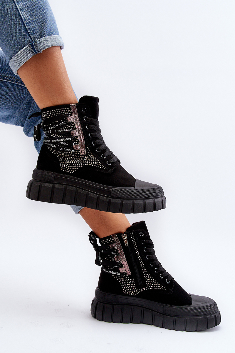 Wysokie Trampki Damskie Na Masywnej Platformie Czarne Wonise