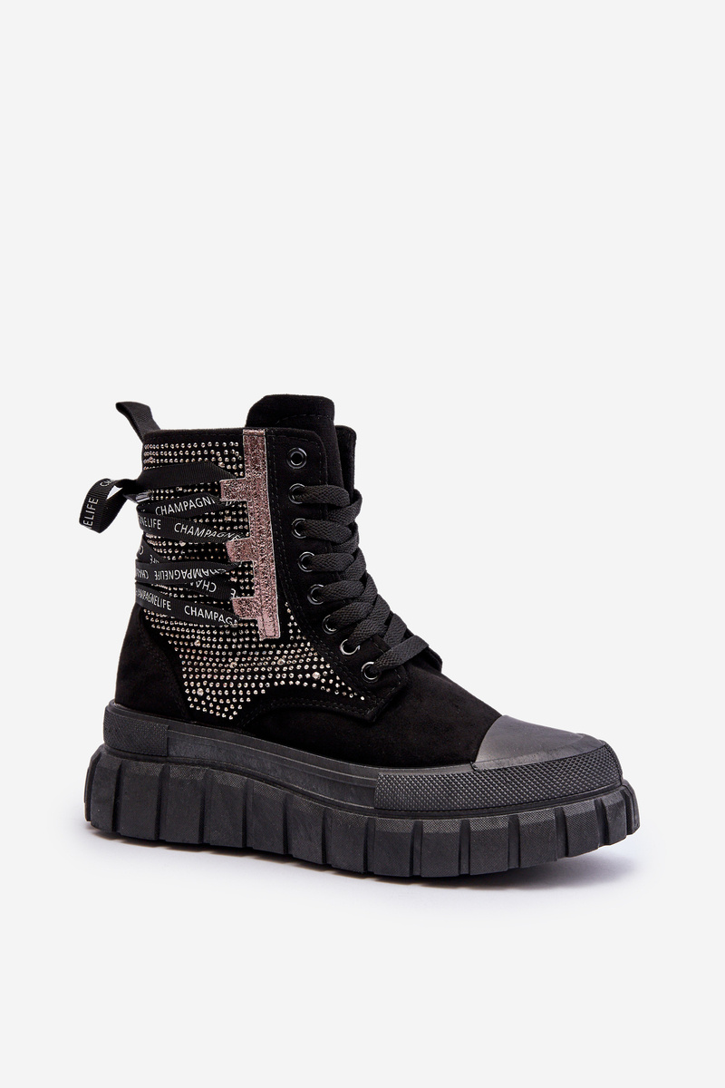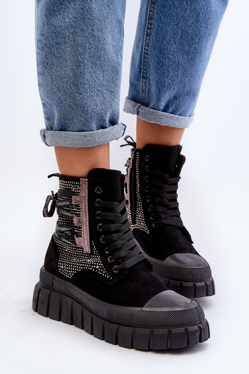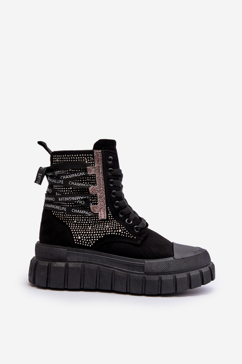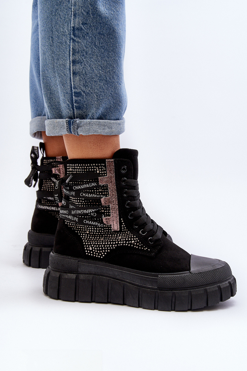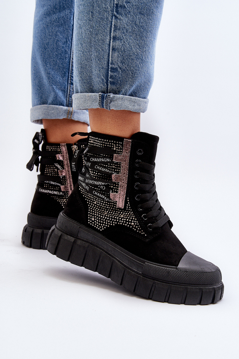 Wysokie Trampki Damskie Na Masywnej Platformie Czarne Wonise
