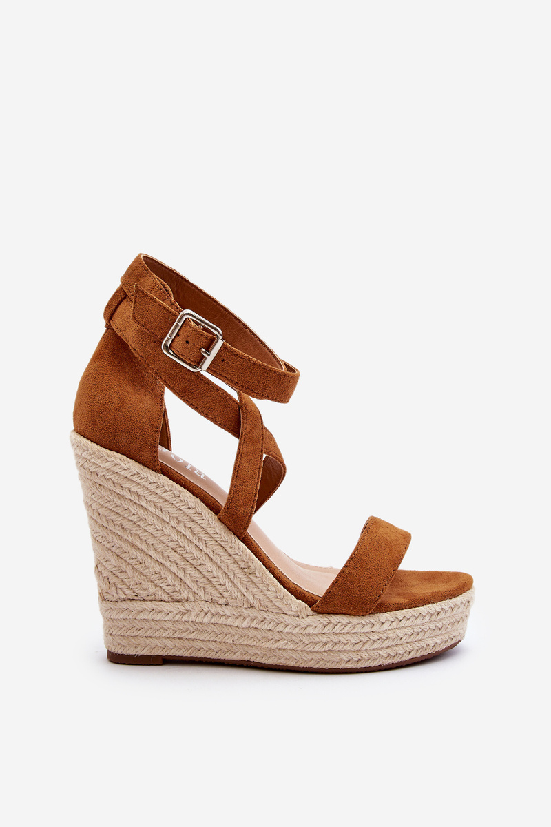 Sandały Na Koturnie Z Plecionką Camel Salthe