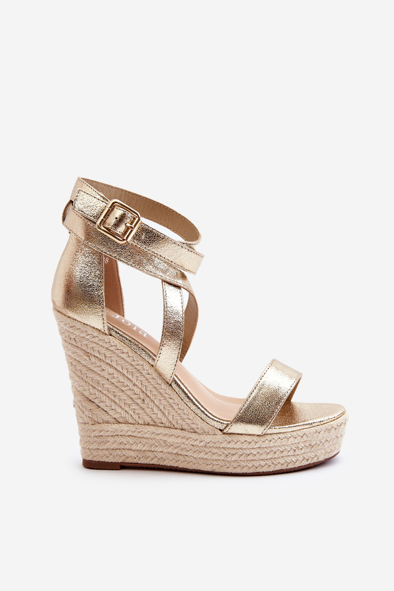 Sandały Na Koturnie Z Plecionką Złote Salthe