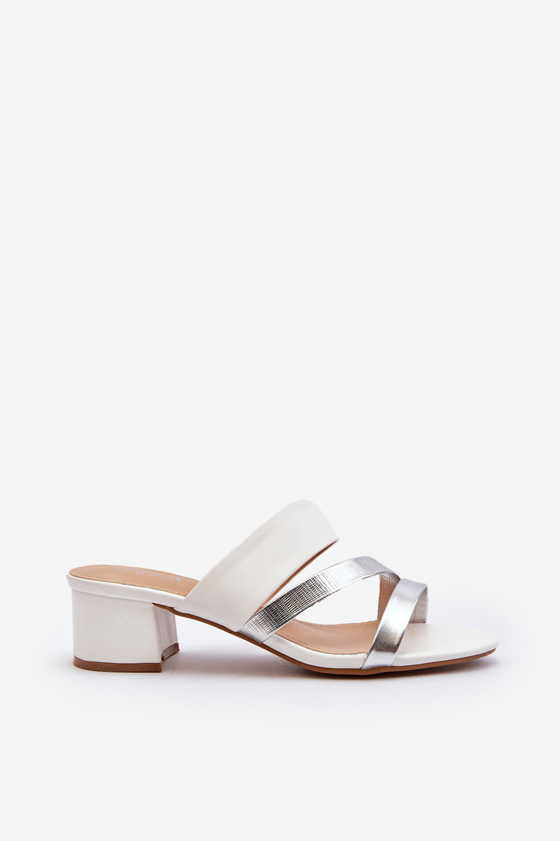 Klapki Damskie Na Niskim Obcasie Białe Rosila