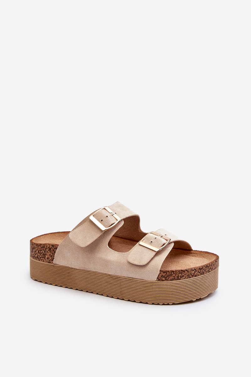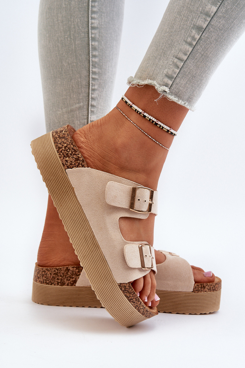 Damskie Klapki Na Platformie Z Klamrami Beżowe Lolpey