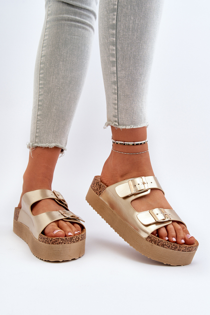 Damskie Klapki Na Platformie Z Klamrami Złote Lolpey