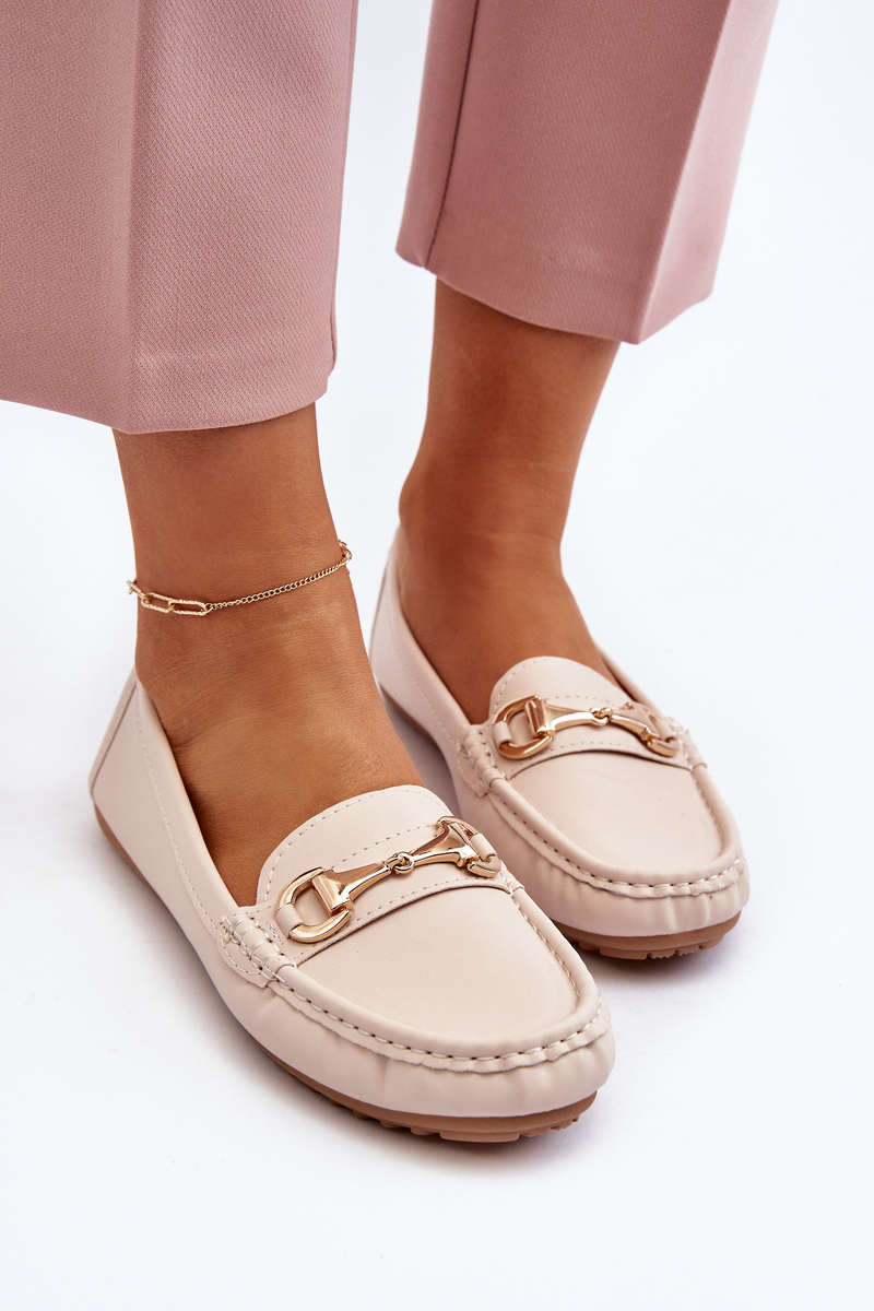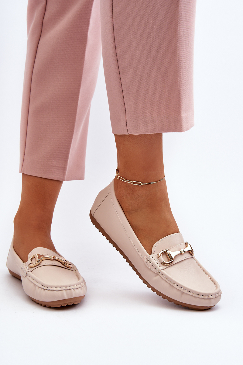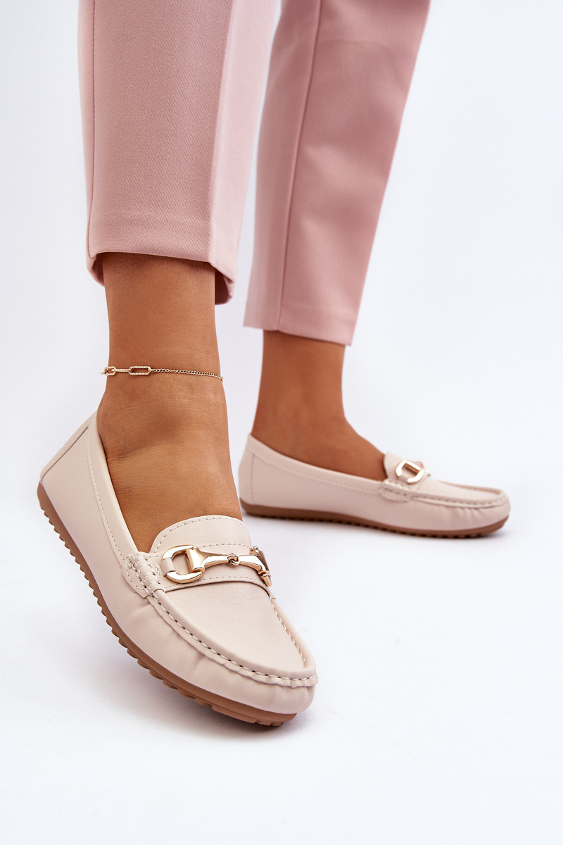 Damskie Klasyczne Mokasyny Eko Skórzane Beżowe Demese